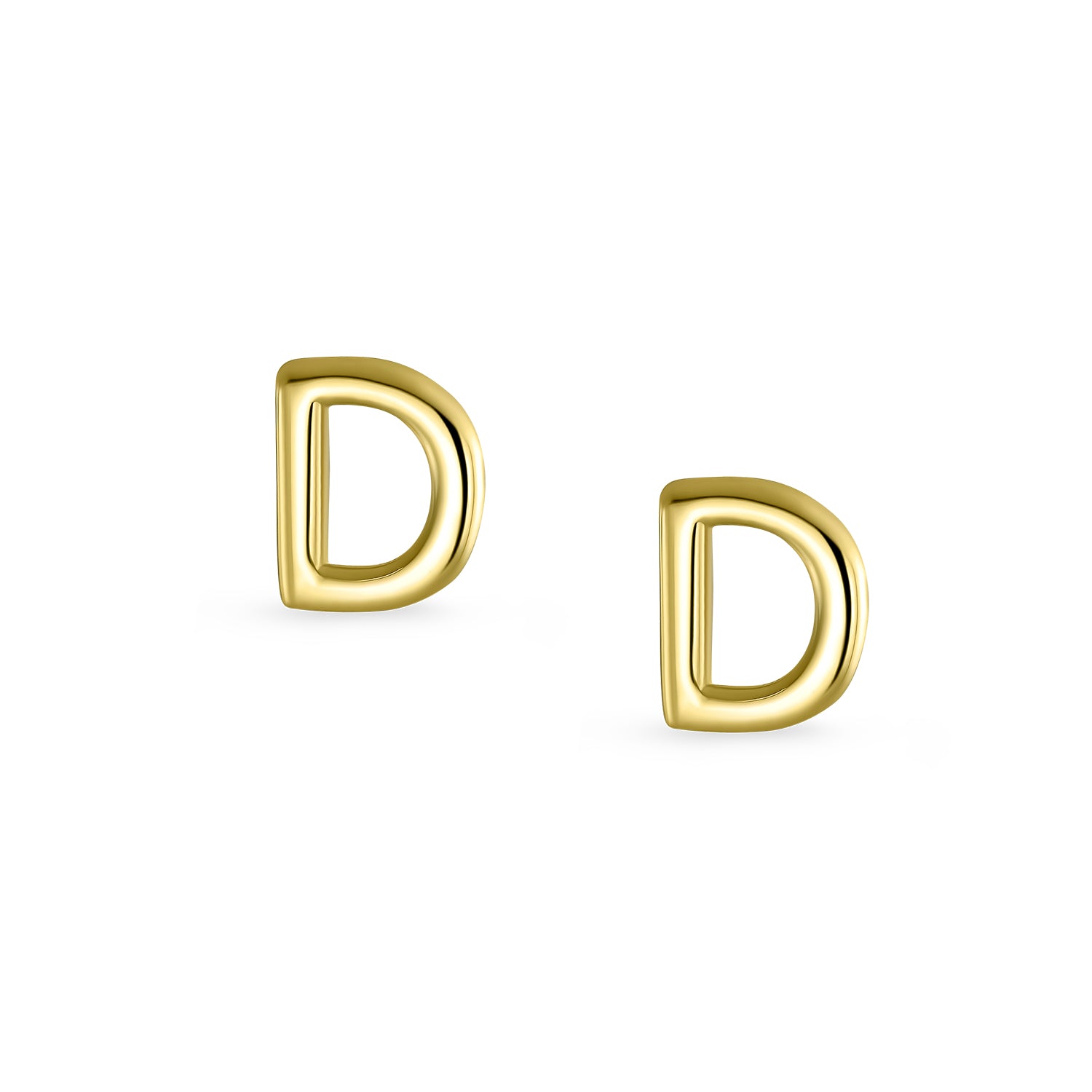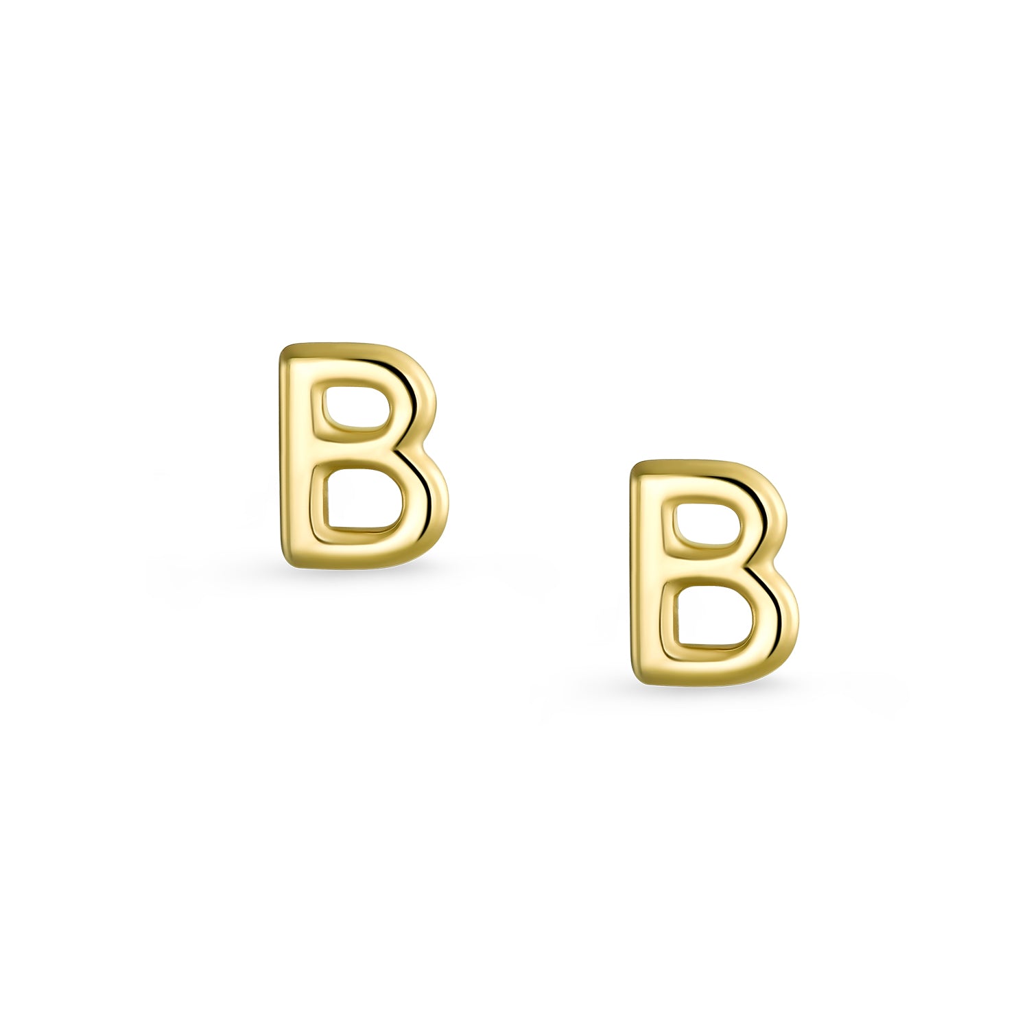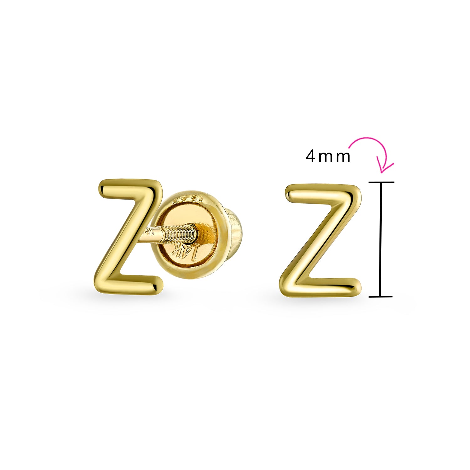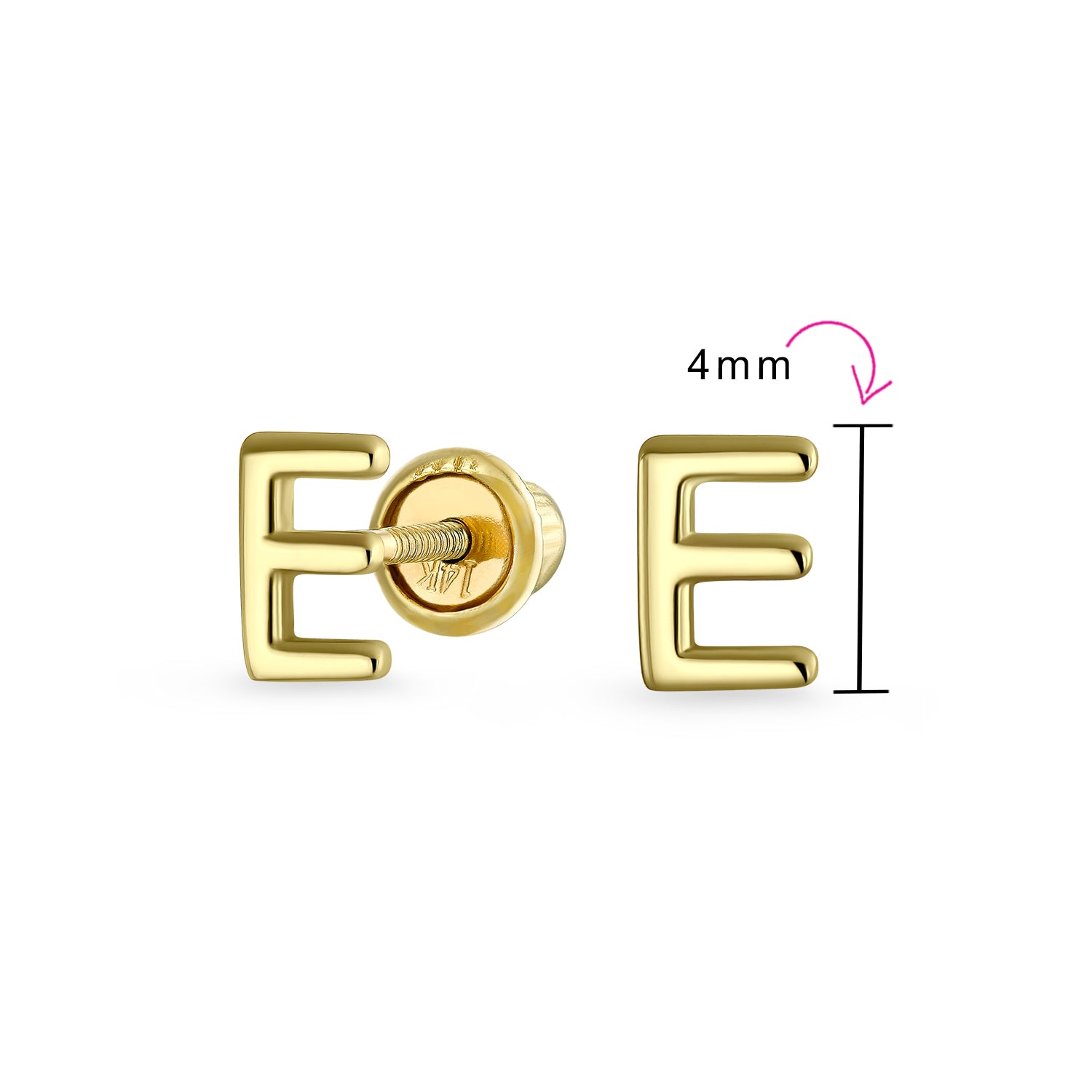 ABC Tiny 14K Gold Block Alphabet Letter Initial Stud Earrings Screw-Back