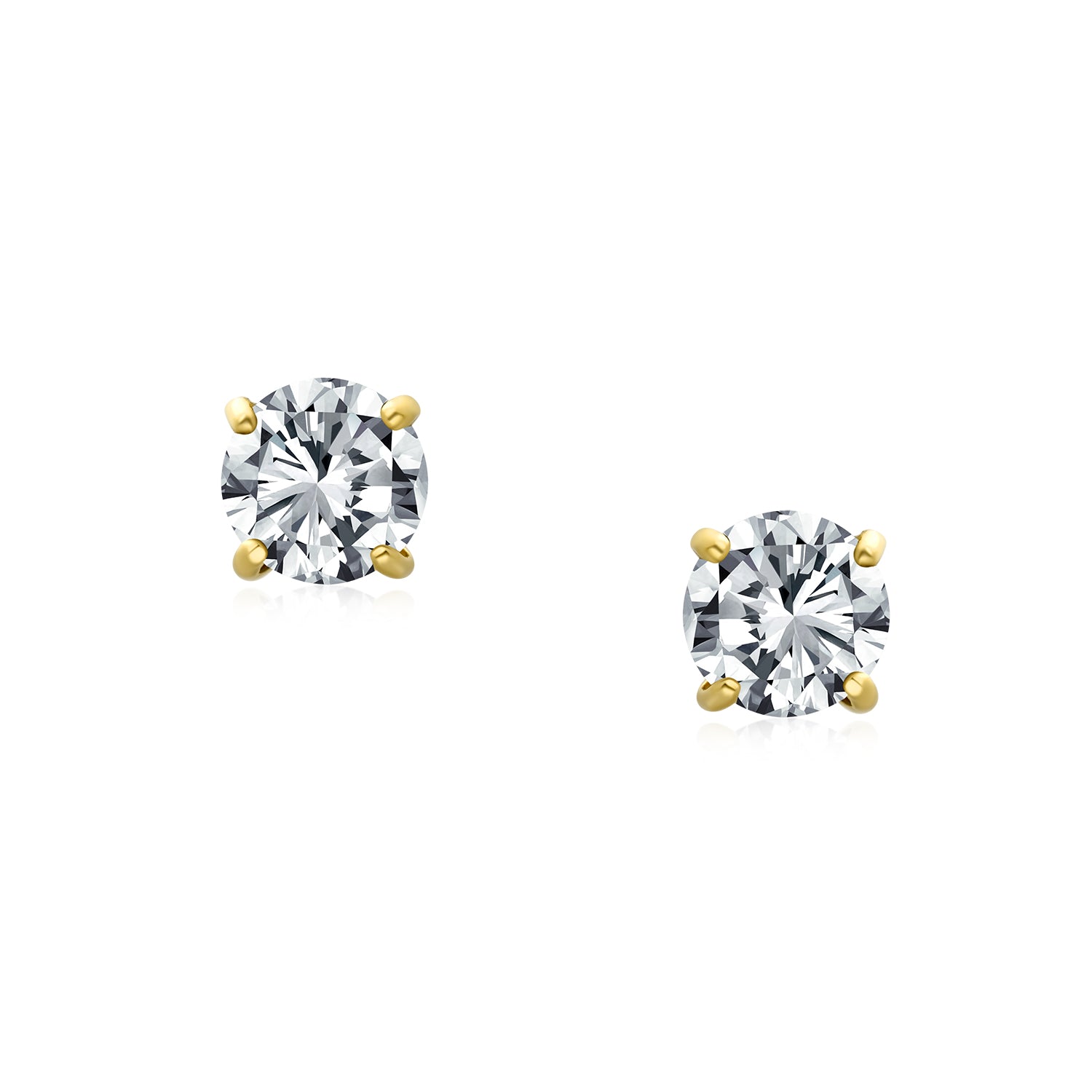 - These 14K yellow gold solitaire stud earrings showcase a sparkling 3mm AAA cubic zirconia in a brilliant-cut design, offering a timeless and minimalist look that complements any style. The classic prong setting enhances the stone’s radiance, making these earrings perfect for everyday sophistication or adding a touch of glamour to special occasions.