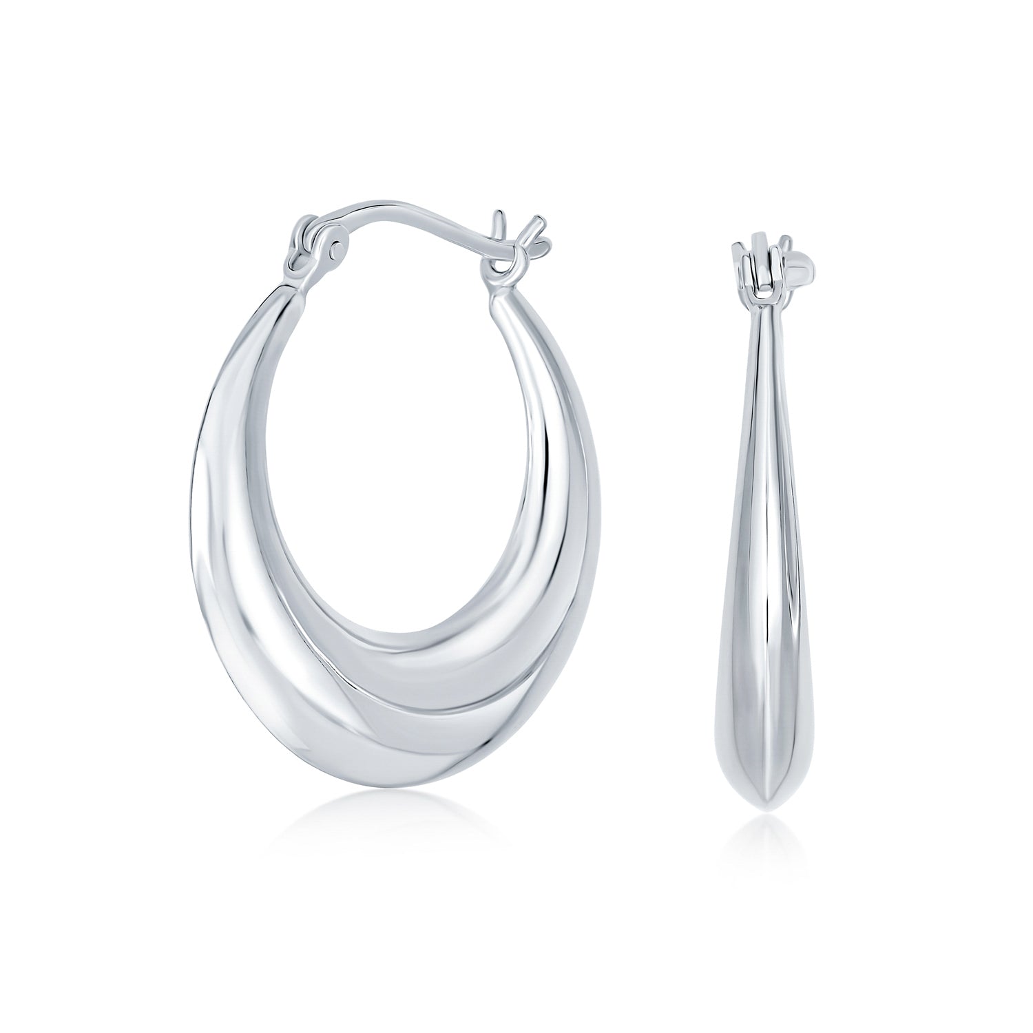 - These timeless, elegant silver hoop earrings are a must-have. Heavy graduated crescent hoops rest comfortably without weighing you down. Versatile sterling silver jewelry, perfect for any occasion from morning coffee to happy hour.