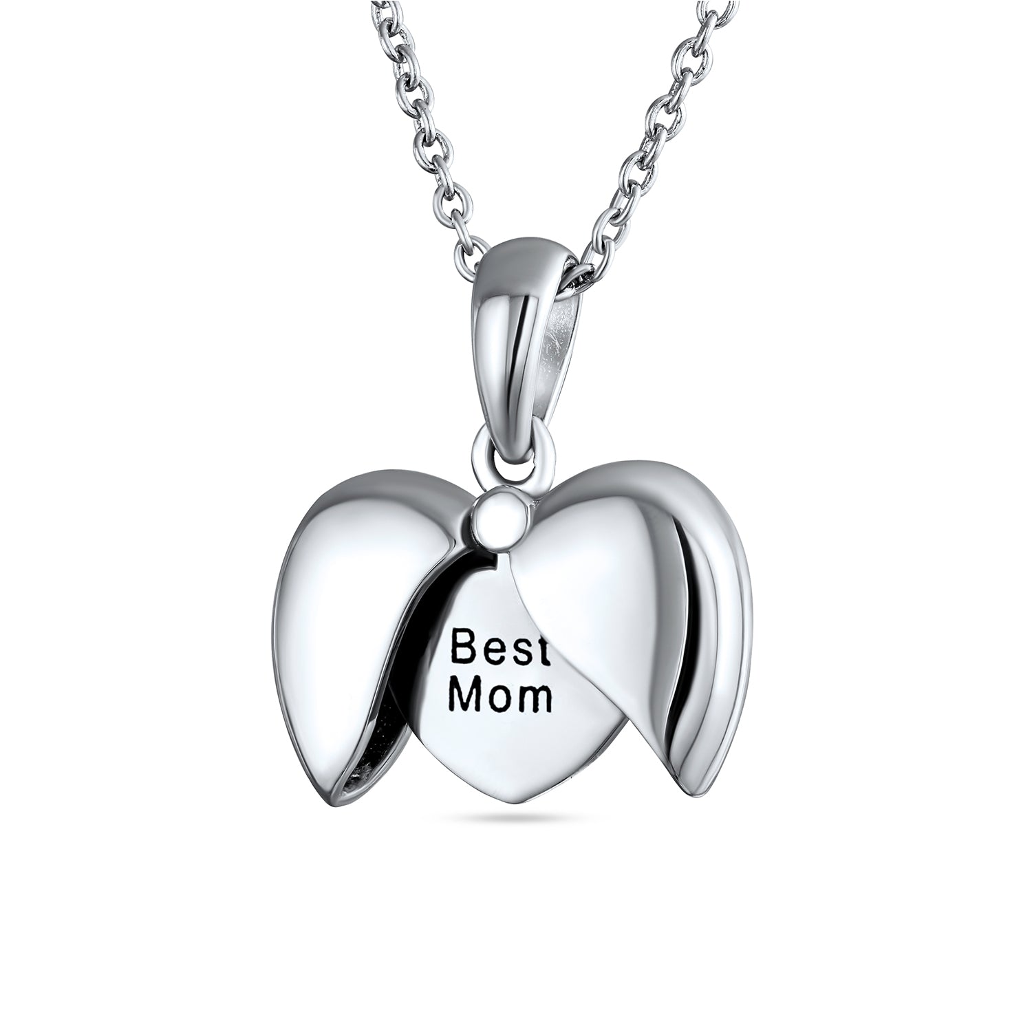 BEST MOM Word Angel Wing Heart Locket Pendant Necklace .925 Sterling Silver
