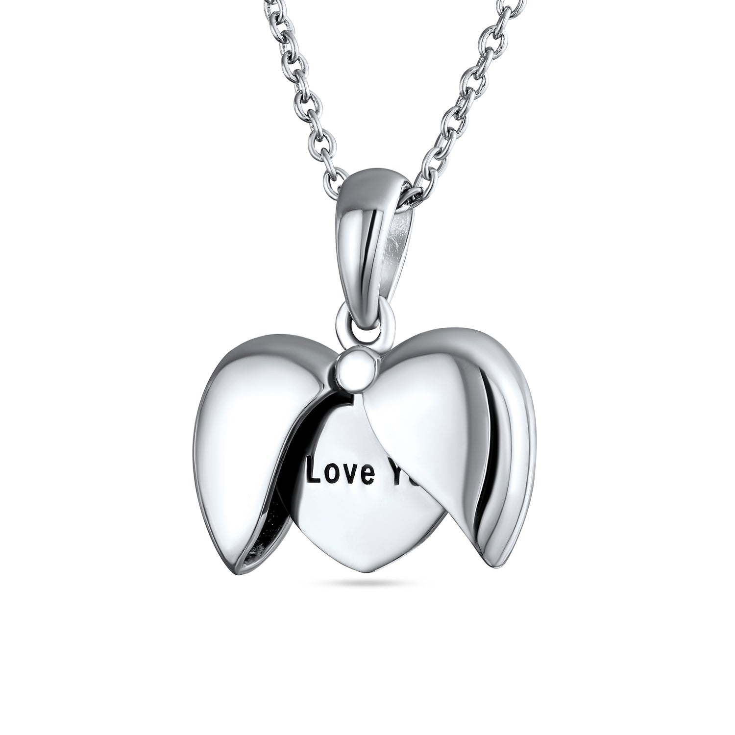 I LOVE YOU Word Angel Wing Heart Locket Pendant Necklace .925 Sterling Silver