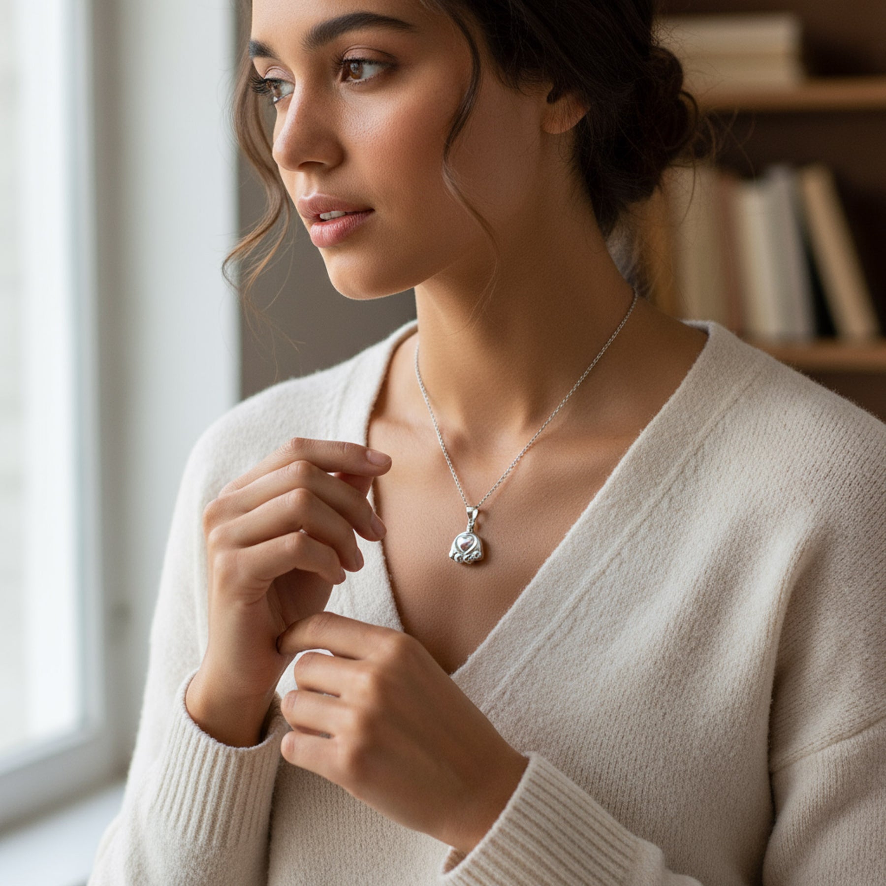 - This stunning .925 silver cremation keepsake necklace features a pet paw print motif, elegantly commemorating your four-legged best friend. A sentimental heart in the center keeps your beloved pet forever close.