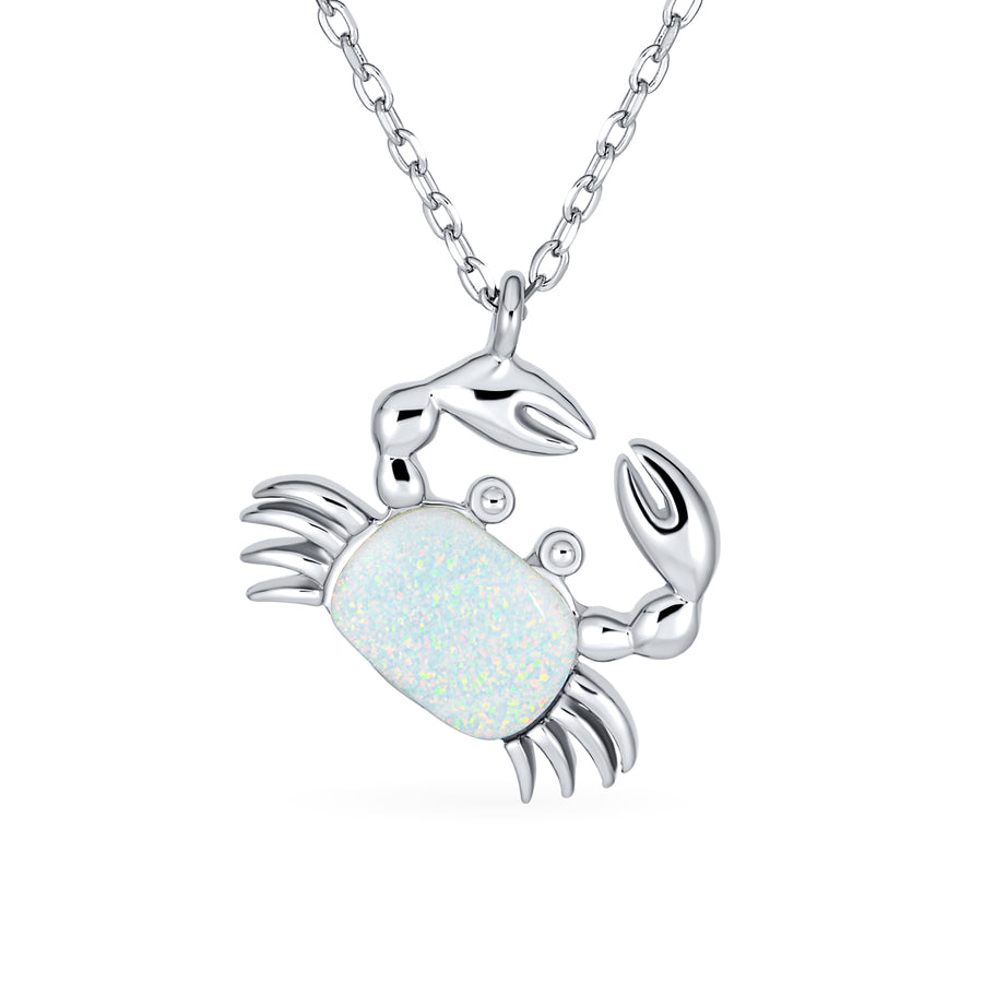 - Opal sand crabs peandant in stunning iresidescent white colors are delicately outlined by sterling silver, making this necklace the perfect gift for October birthdays, Zodiac Cancers, and ocean lovers alike.