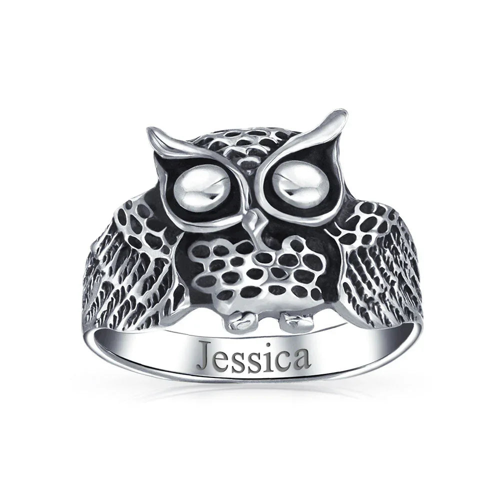 - Enhance your style with this charming sterling silver owl ring. Its antique-inspired design showcases your impeccable taste. Perfect graduation gift for her. A stunning addition to any sterling silver jewelry collection. Embrace timeless owl jewelry, ideal for women of all ages.