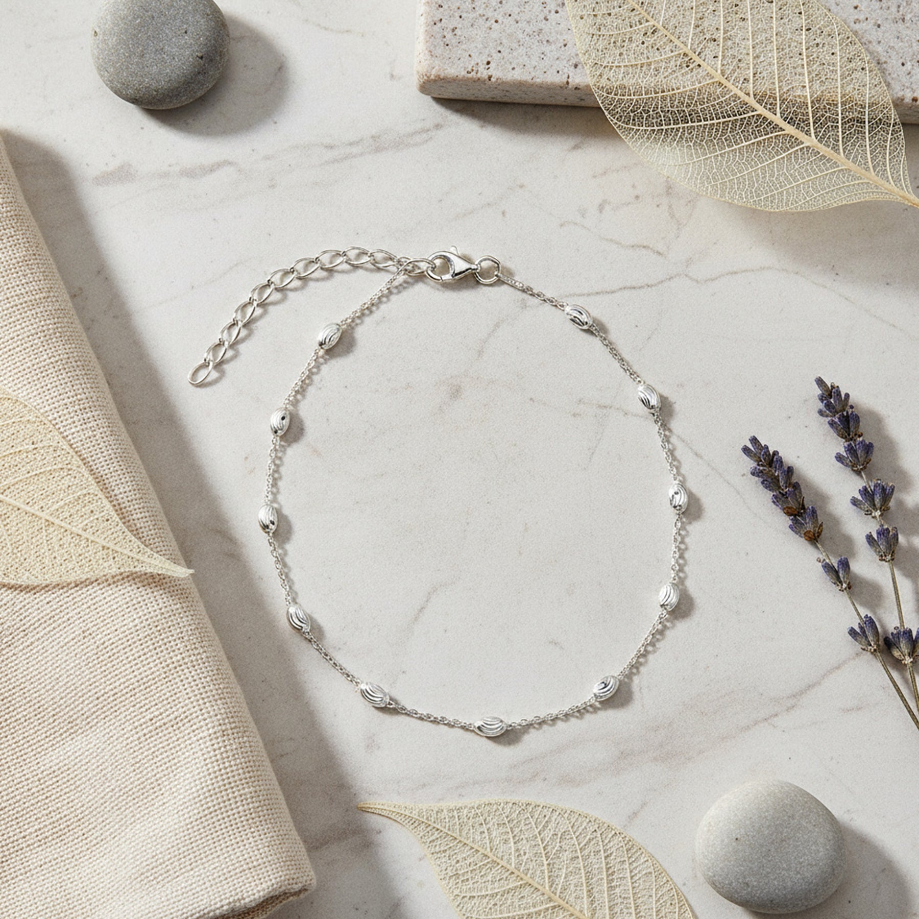 Hot Wife Diamond-Cut Oval Beads Anklet Ankle Bracelet Sterling Silver