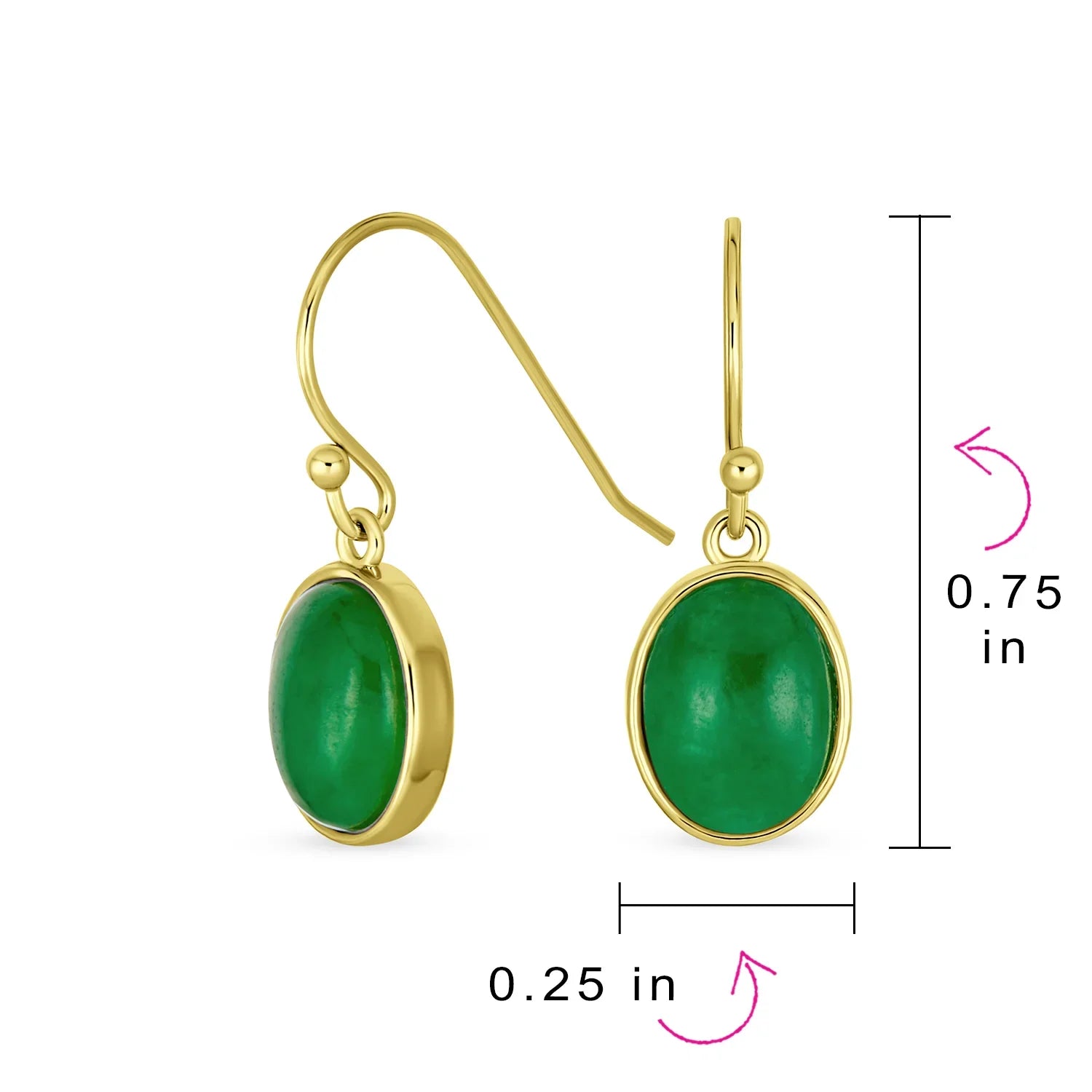 - Material: Genuine .925 Sterling Silver Yellow 14K Gold Plated, HYPOALLERGENIC - Lead-Free Nickle-free. Each piece is stamped .925 guarantees quality and craftmanship. Stone: 6X8MM Jade Measure: 0.75 Inch Length x 0.25" W, Weight: 2