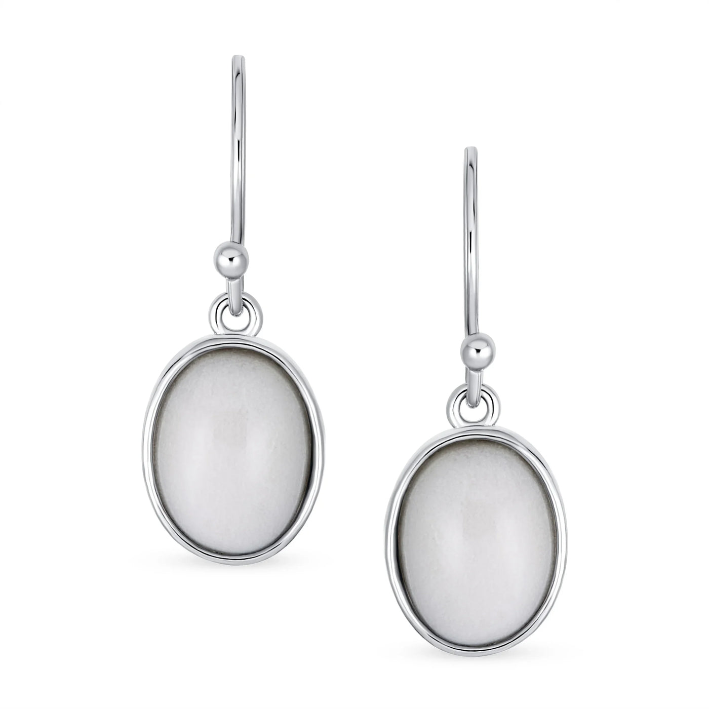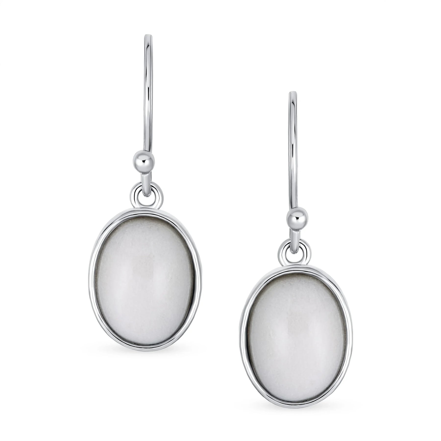 - Elevate your chic look with our stunning bezel set fish hook earrings. Perfect for ladies who love extra style. Crafted from sterling silver, featuring an elegant oval gemstone. Affordable and a must-have for every fashionable woman. Rhodium or gold plating ensures they resist tarnish. Add contemporary style to your wardrobe. Versatile and pretty, pair with any outfit. Make a statement with these exquisite earrings.