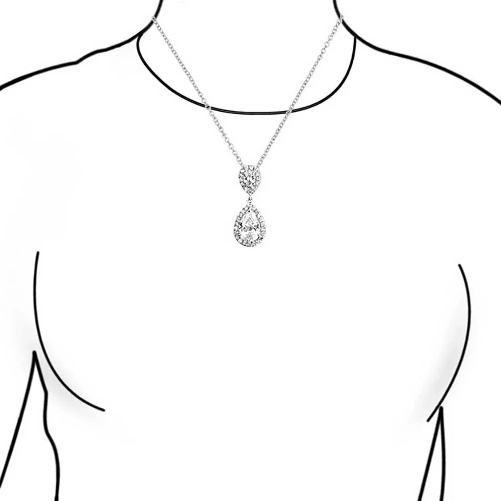 - This stunning 1.14-inch teardrop pendant showcases a large pear-shaped CZ, elegantly encircled by smaller CZs. Paired with a 16-inch chain and a 2-inch extender, it makes an ideal gift for any bride, ensuring a perfect fit. This classic and timeless piece is sure to become her new favorite accessory.