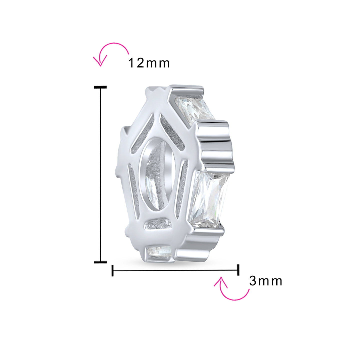 - Material: .925 Sterling Silver, Cubic Zirconia CZ: 4 mm L x 2 mm W Measure: 12 mm L x 3 mm W, 4 mm Bead Core Weight: 1.2 Grams