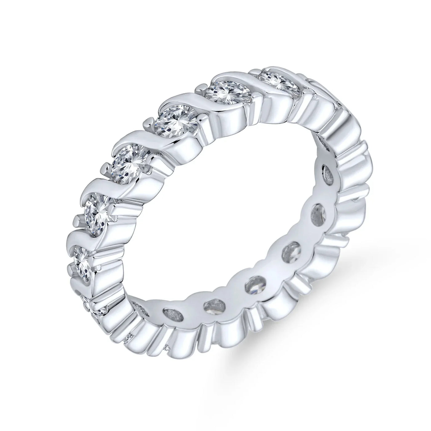 - Elegant Sterling Silver Wave Eternity Ring with Sparkling CZ Stones