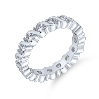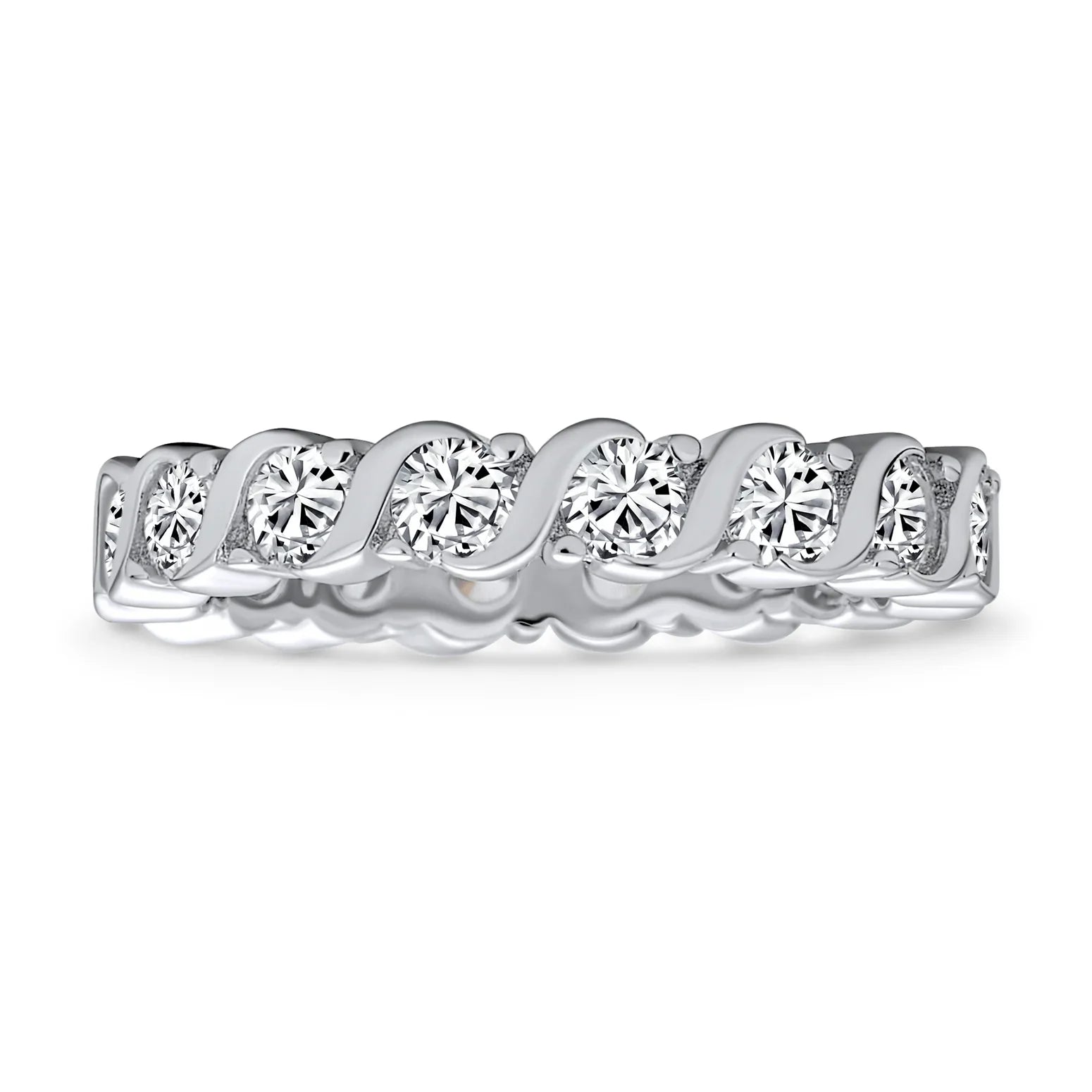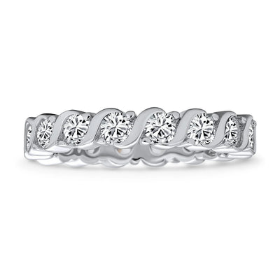 - Show your eternal love with this stunning sterling silver eternity ring. The band features glittering CZ stones and wave motifs. This 2mm round cubic zirconia ring sparkles brilliantly. Perfect for expressing everlasting love, order this beautiful CZ jewelry today.
