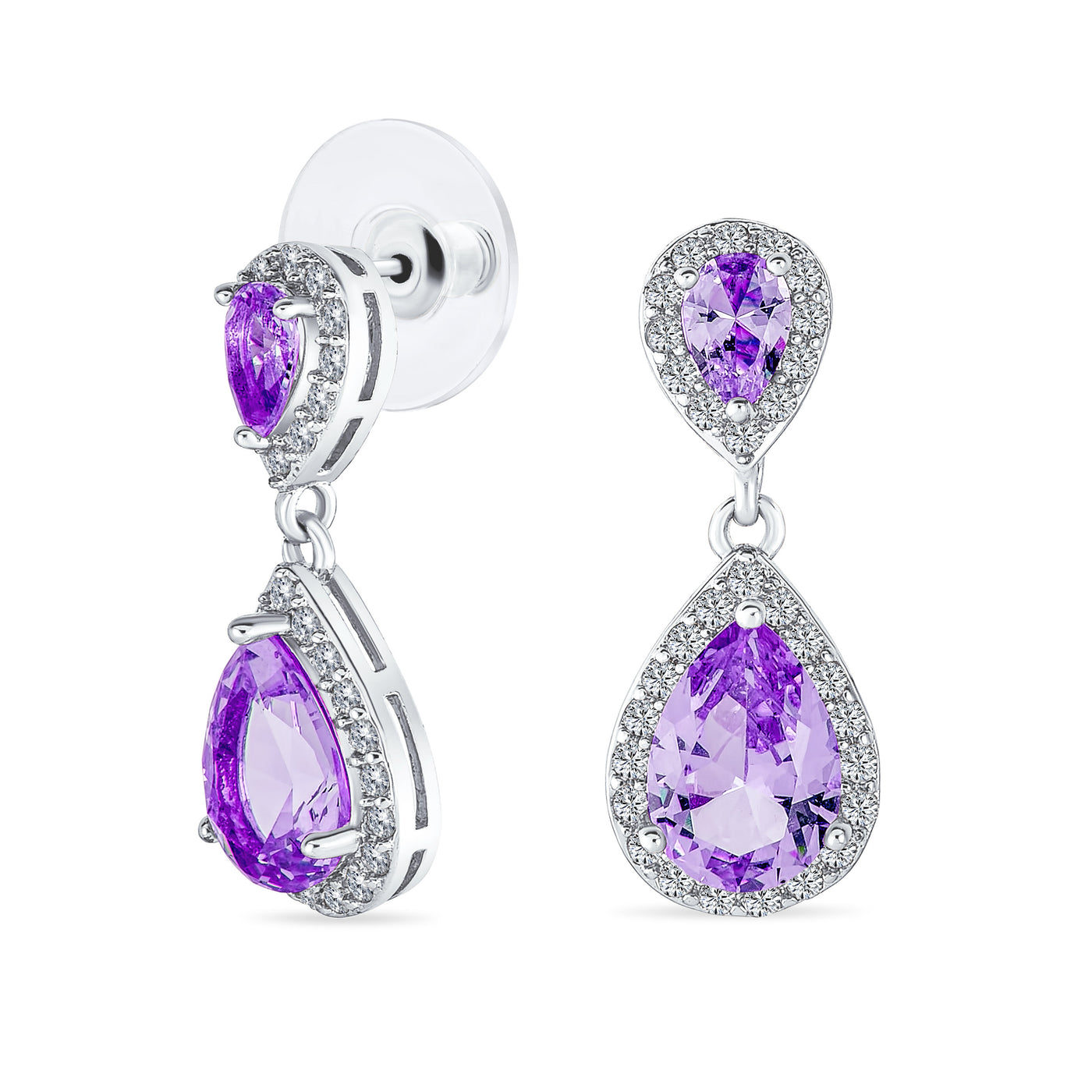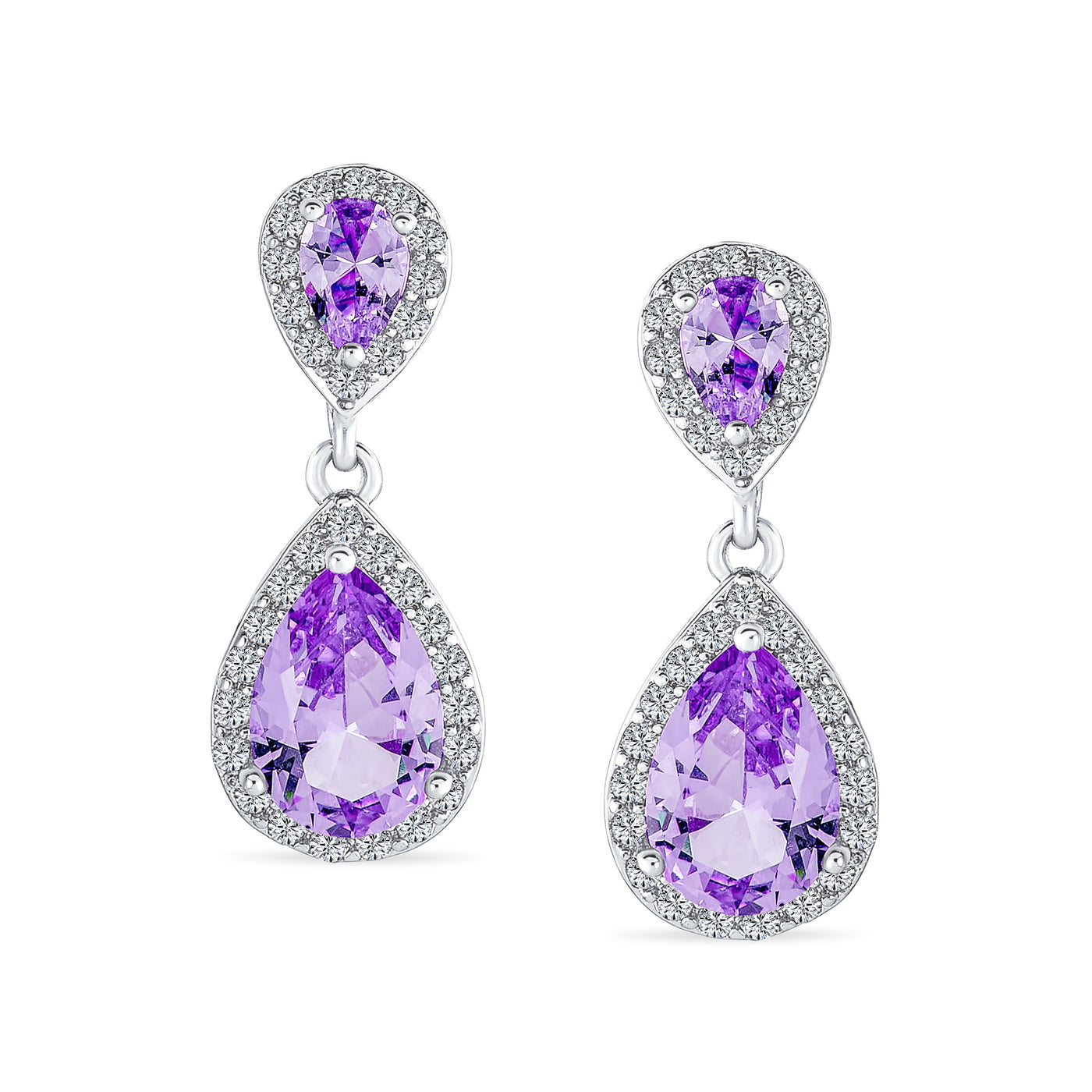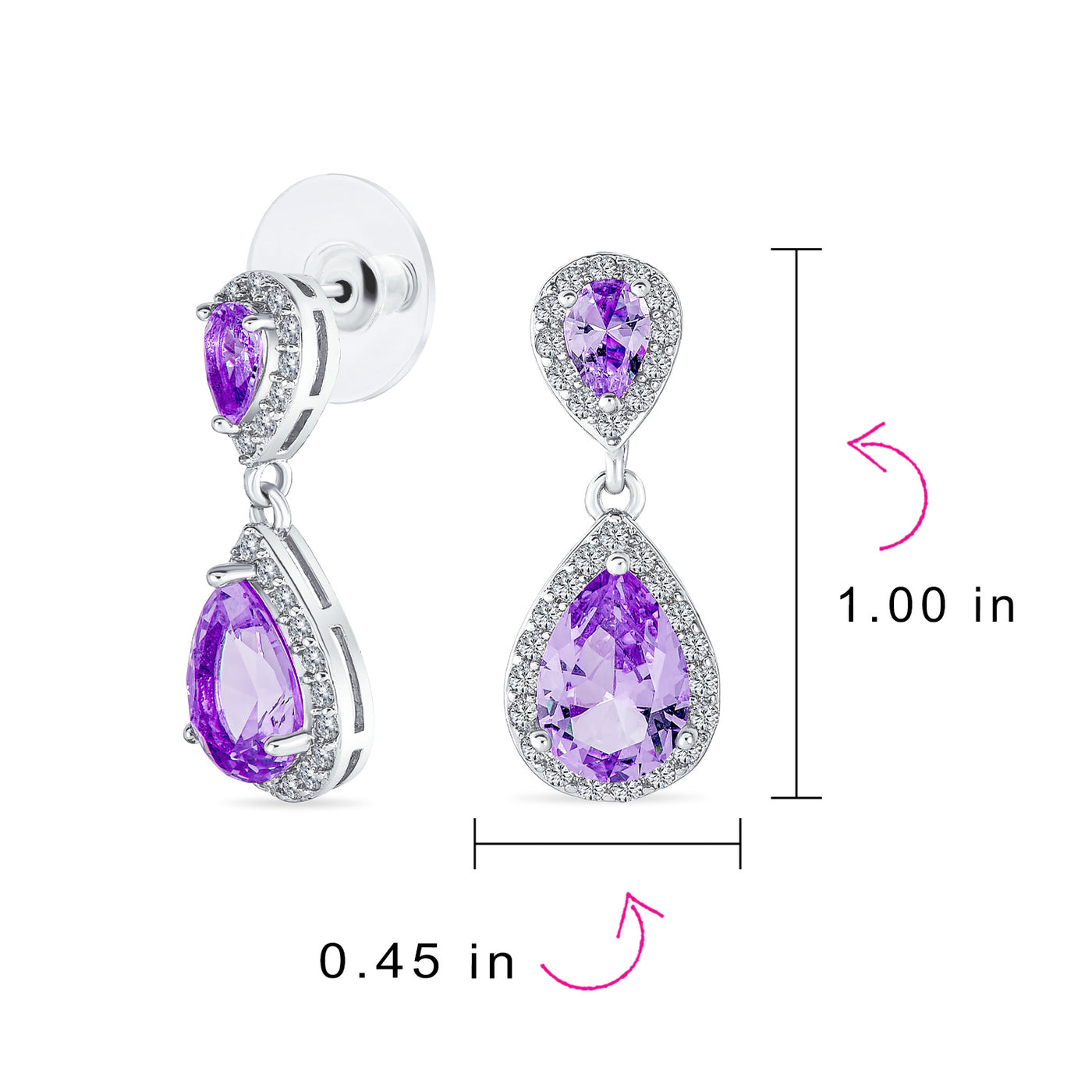 - Elevate your look with these elegant teardrop chandelier earrings, featuring a timeless vintage design with pear-shaped CZ stones and delicate pave crown accents. Perfect for bridesmaids, brides, prom, cocktail parties, holidays, or weddings. Available in a variety of simulated gemstone birthstone colors to suit any style.