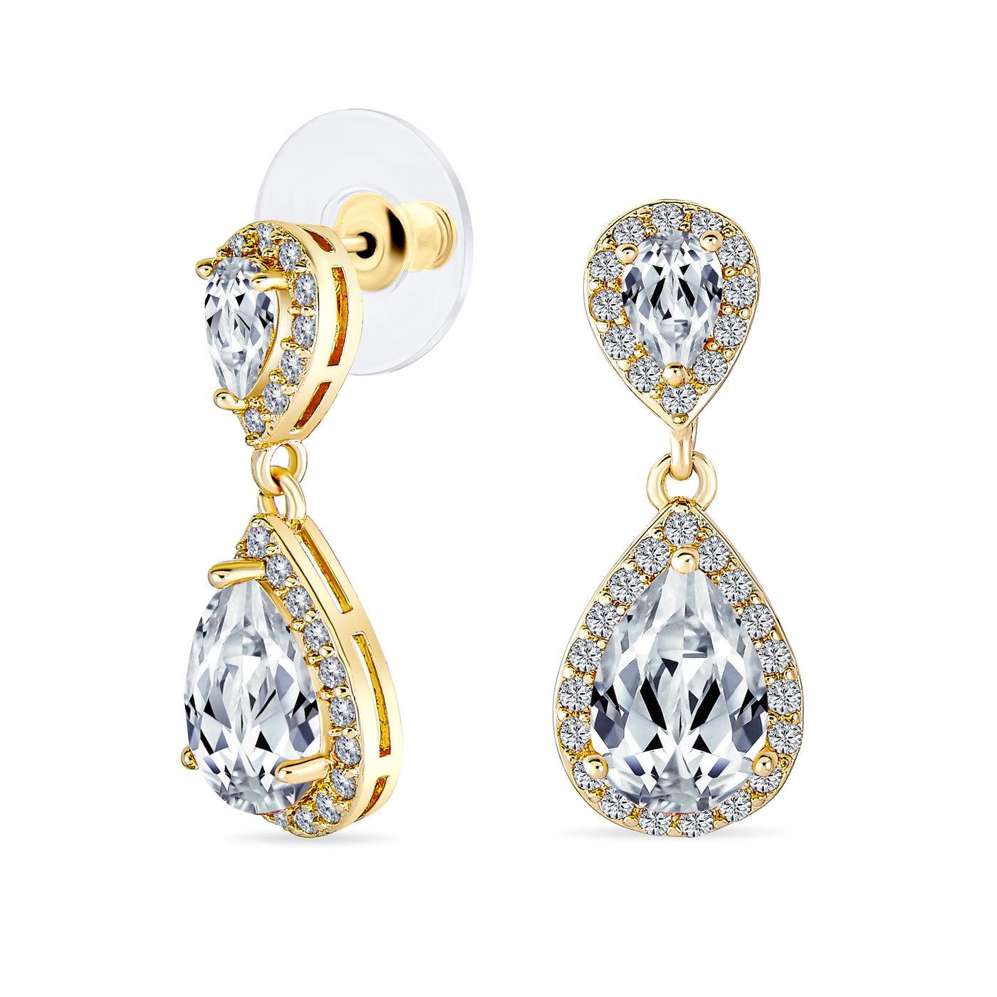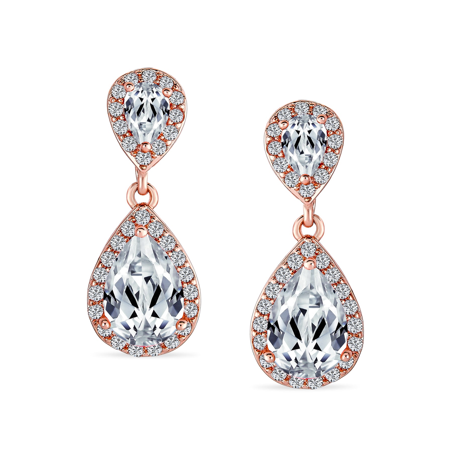 - These stunning CZ teardrop dangle earrings are fit for a princess. Rhodium plating ensures a tarnish-resistant shine. Affordable bridal earrings that elevate any style. Chic sparkle and elegance guaranteed to turn heads. Perfect bridesmaids gifts to keep your bridal party sparkling.