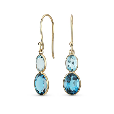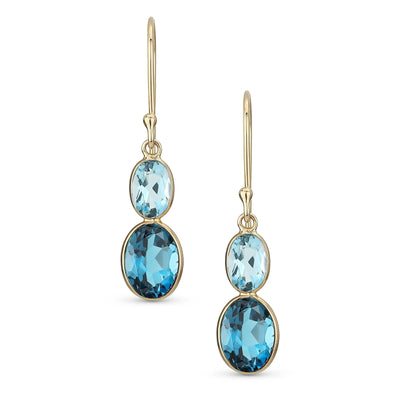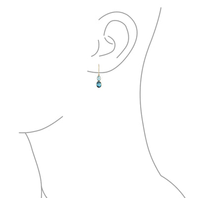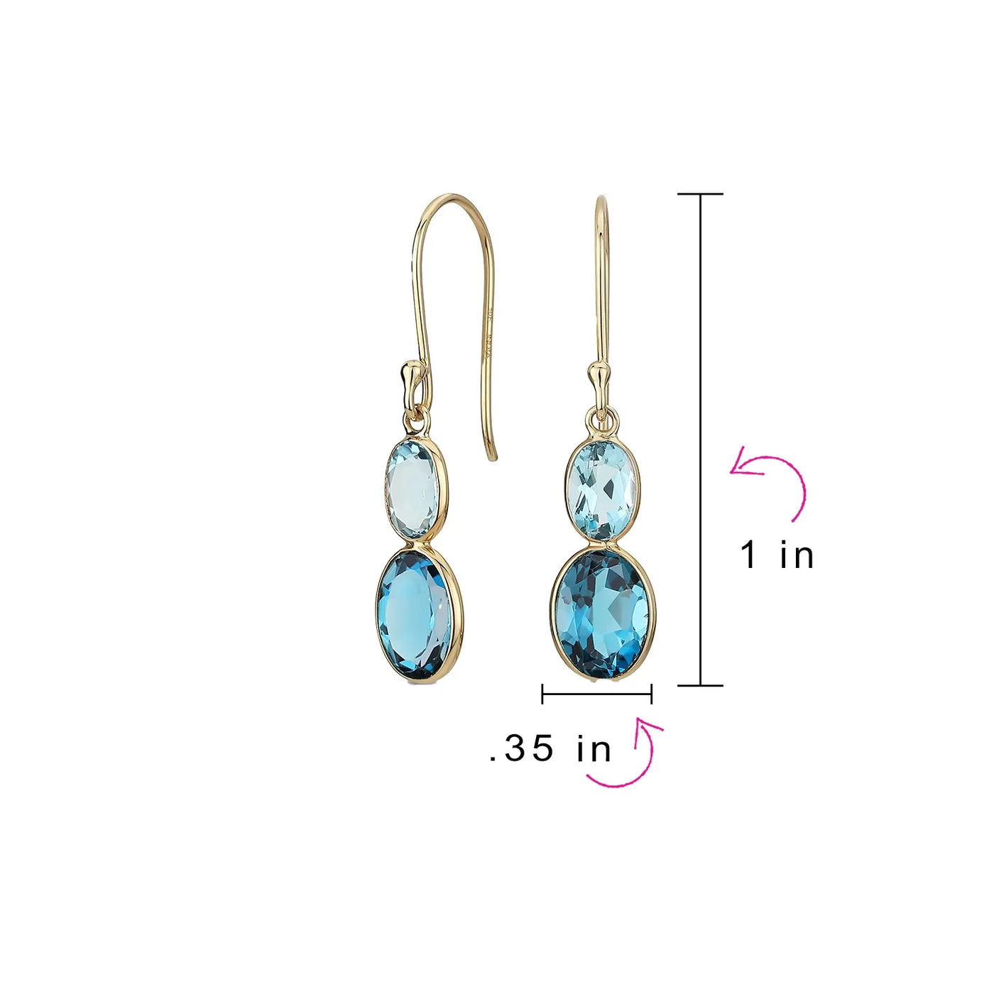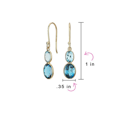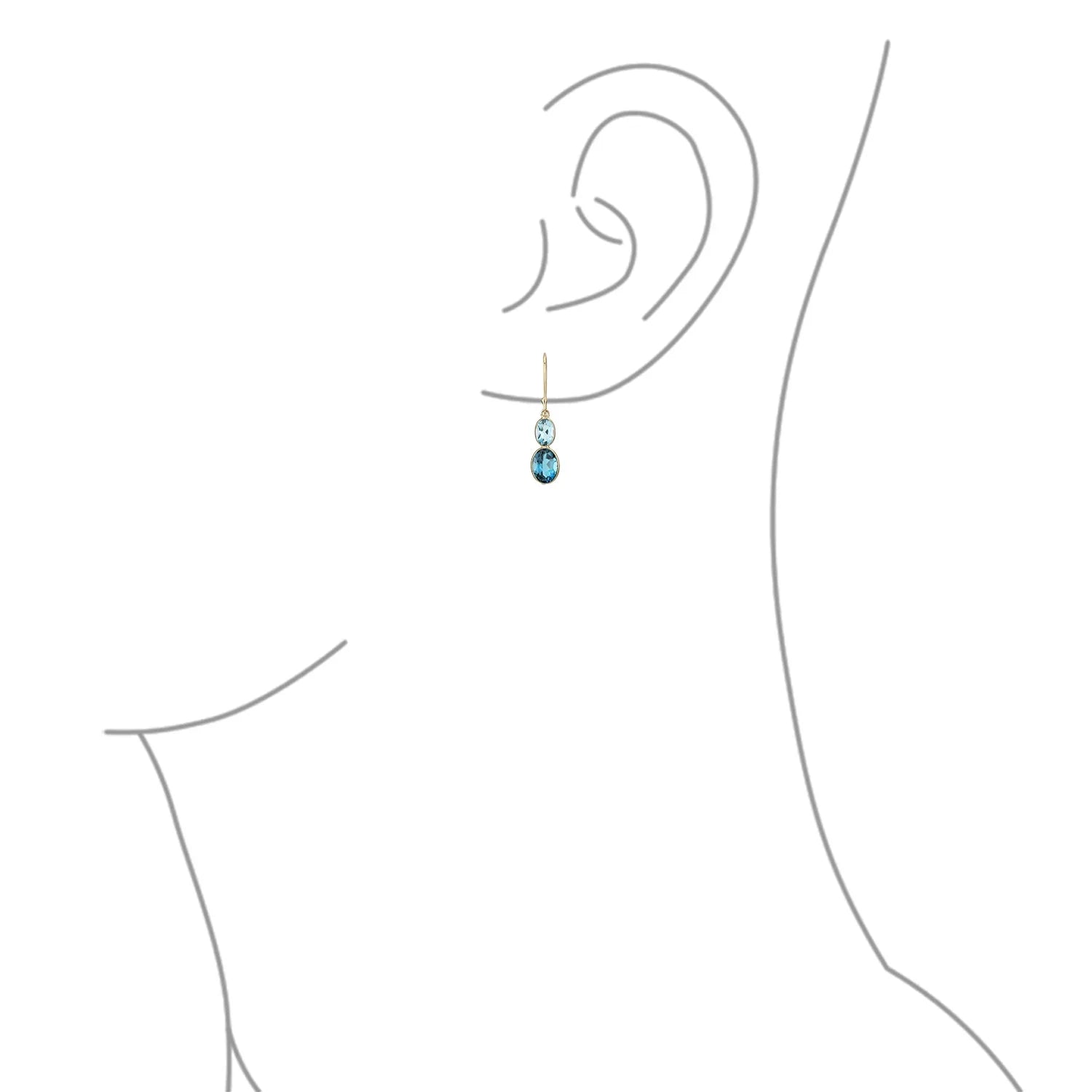 Genuine 10K Gold Faceted Two Oval Swiss & London Blue Topaz Drop Earrings