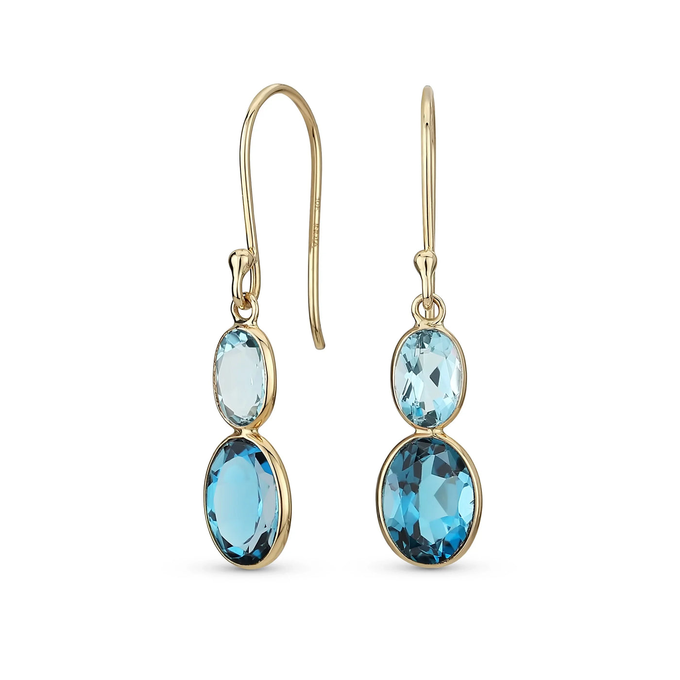 • Discover sophistication in these petite, lightweight oval faceted London Blue Topaz & Swiss Blue Topaz double teardrop dangle earrings. Meticulously crafted with a thin-edged bezel setting, this natural gemstone blends effortlessly with any style, making them a must-have in your jewelry collection.
