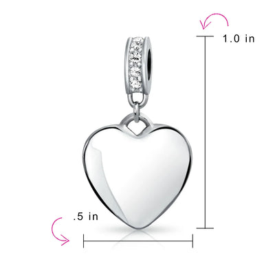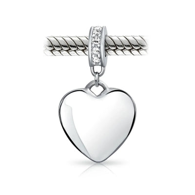 - Celebrate precious moments with our 925 sterling silver dangling heart charm. Adorned with lustrous crystals, it adds extra love. Elegant, understated, and sparkling, exuding femininity. Perfect for your bead story.