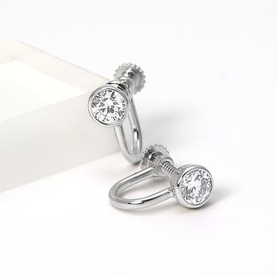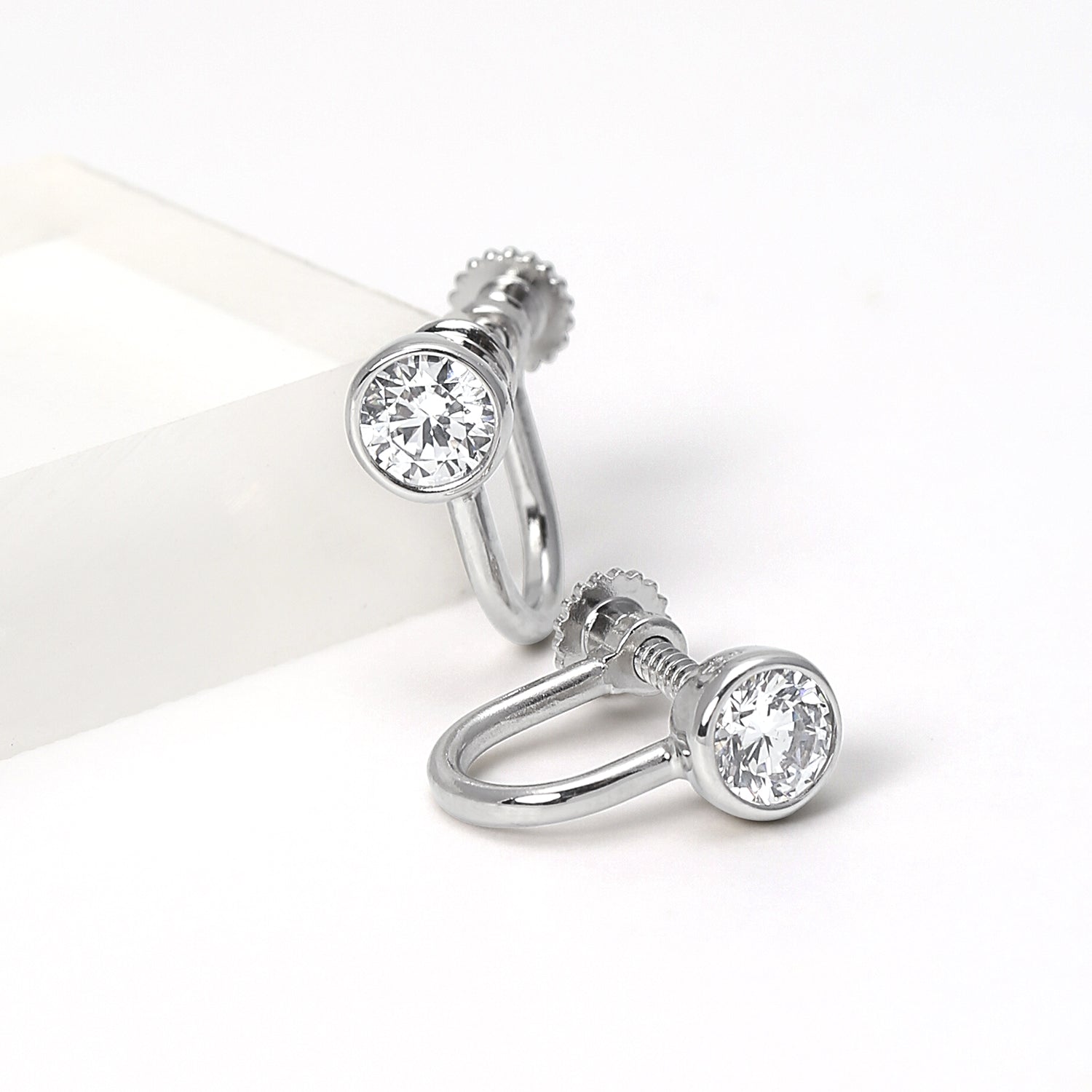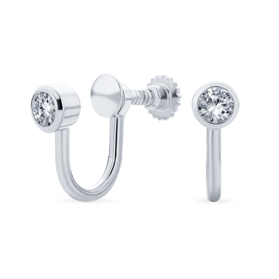 • STUNNING DESIGN - To add brilliant shine and polish to any look choose these lustrously sweet, sterling silver, and cz screwback clip on earrings for non-pierced ears. Featuring a glistening 3.5mm bezel set cz stud on top of a hoop shape design that wraps under ear lobe.
