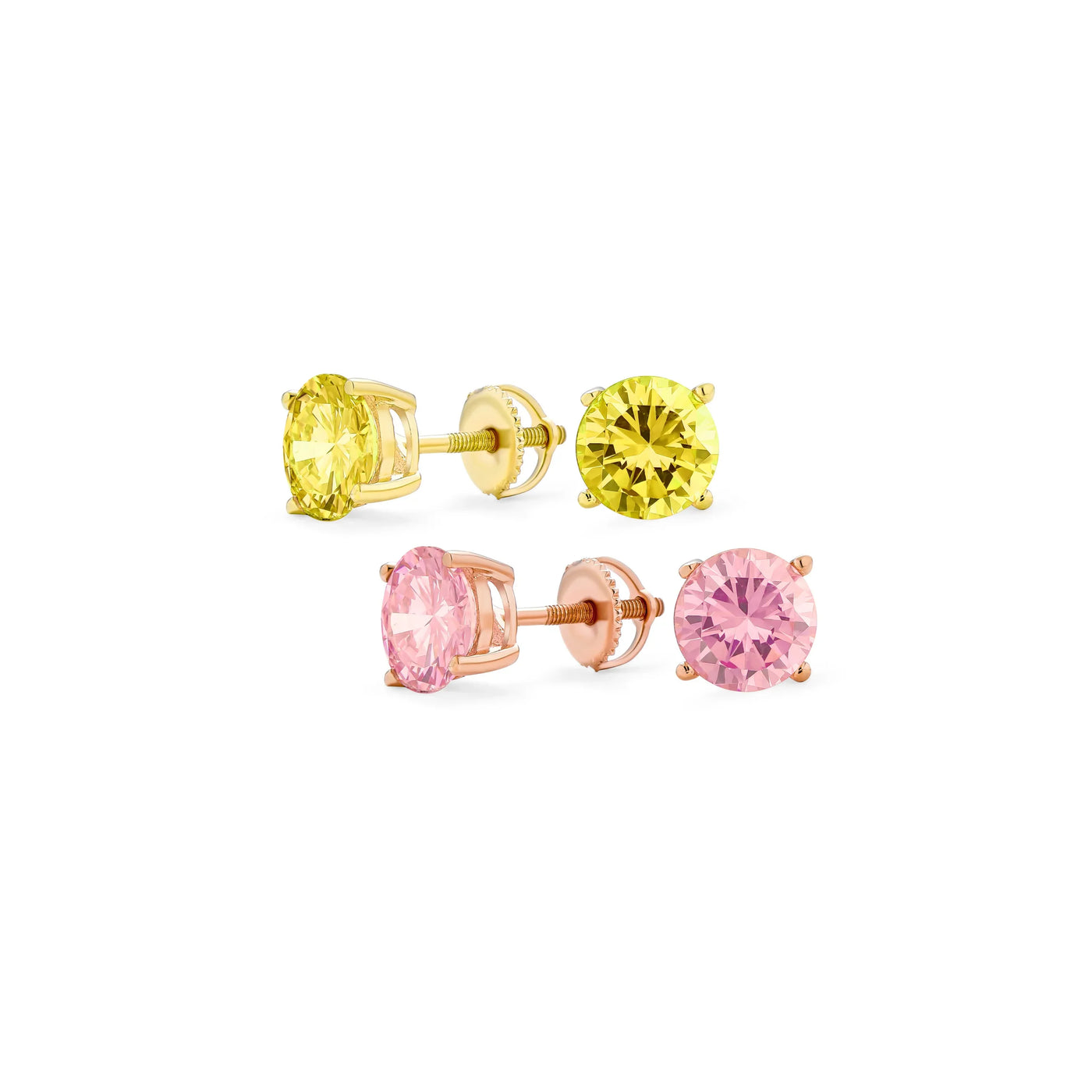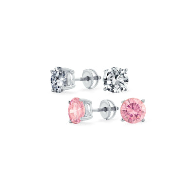Set of 2 Round CZ Stud Earrings Rose Gold Plated Sterling Silver Screw Back