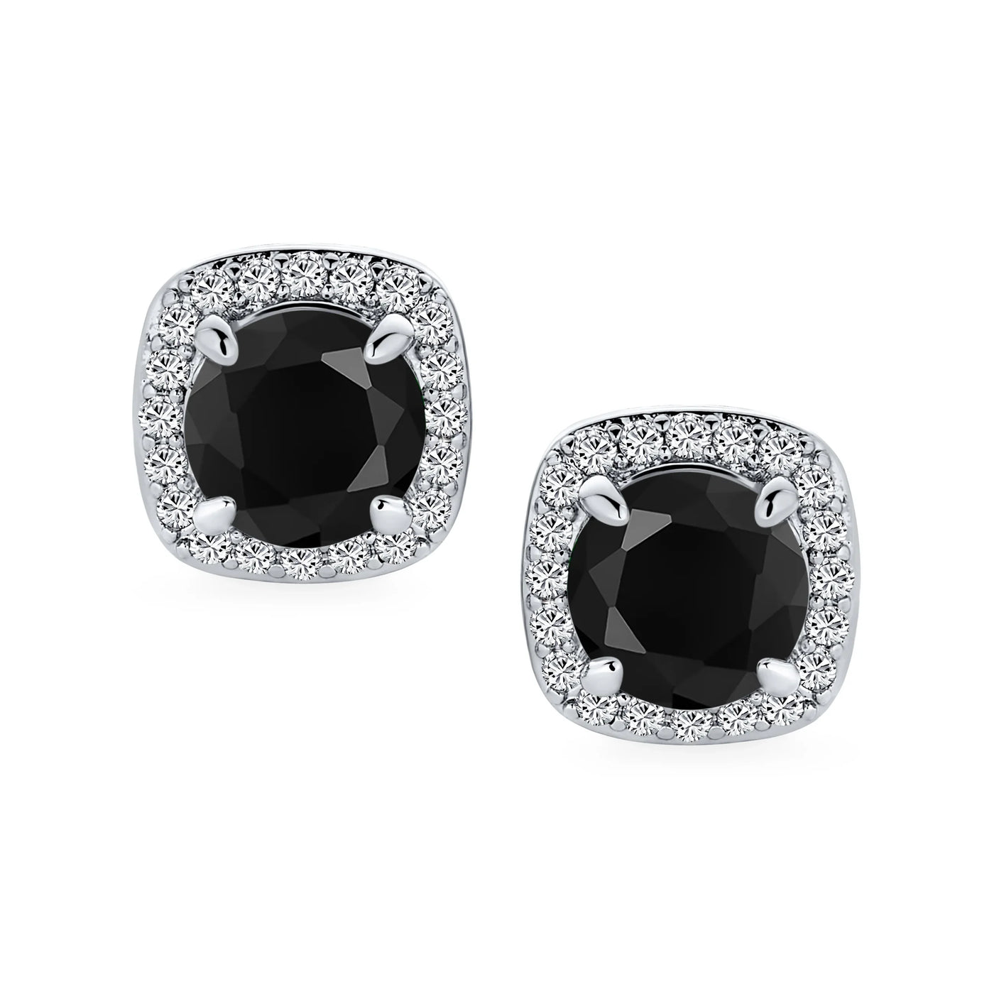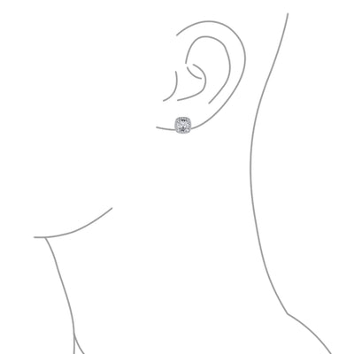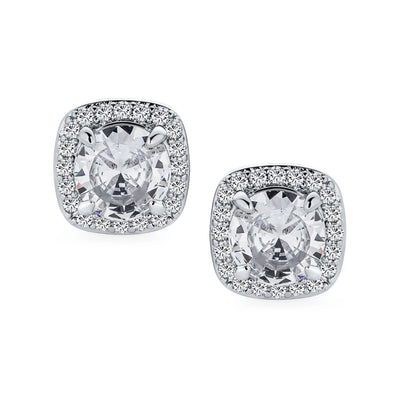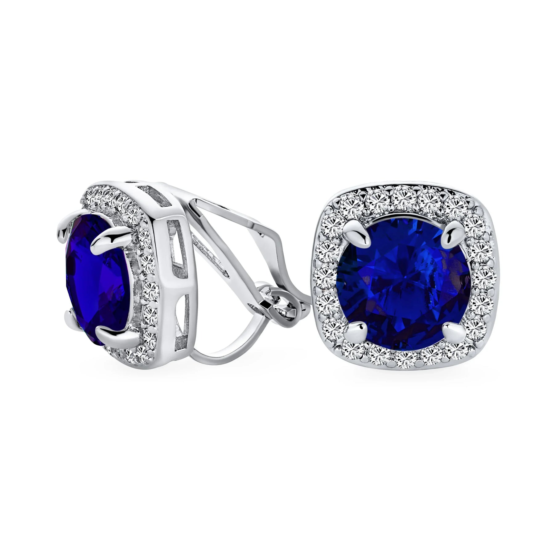 - Our square Halo solitaire clip on earrings are a great choice for the jewelry lover who does not have pierced ears. Featuring an 8mm cubic zirconia stone secured by a four prong setting, these clip on stud earrings will look great on you. Made out of sliver plating these cz bridal studs attach to your ear comfortably and fashionably. These round cz earrings are rhodium plated so they will remain shiny for years to come. Be prepared to receive compliments when you don this pair of cz stud earrings for women.