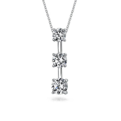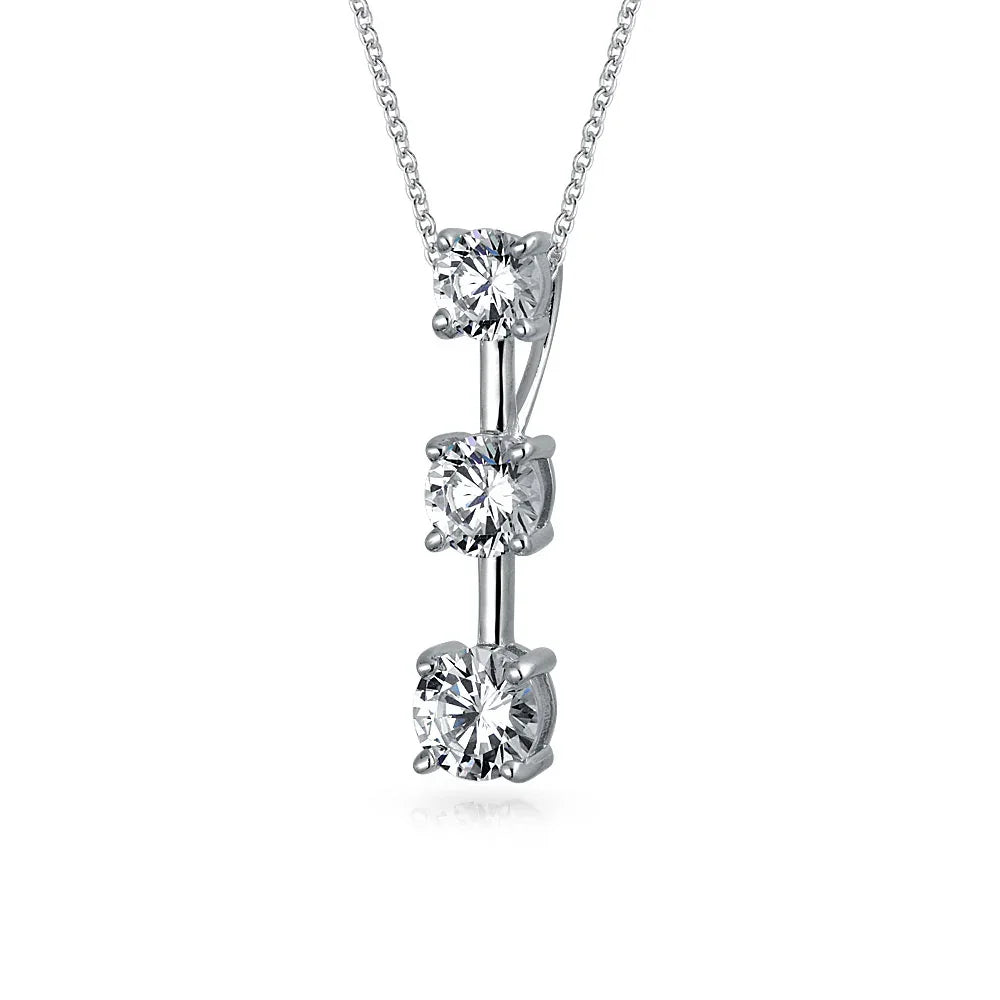 • Celebrate life's milestones with this stunning past, present, and future pendant. Each CZ stone symbolizes a different time in your journey. The smallest stone represents the past, the middle for the present, and the largest for the future. This romantic jewelry piece beautifully symbolizes a couple's life together. Perfect for Valentine's Day or any significant occasion. Sparkling and timeless, this pendant includes a rolo chain to complete the look. Make memories last with this elegant and meaningful piece.