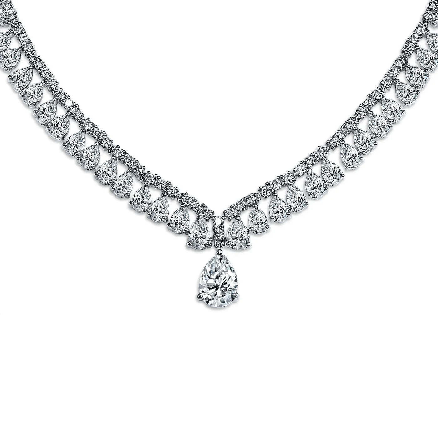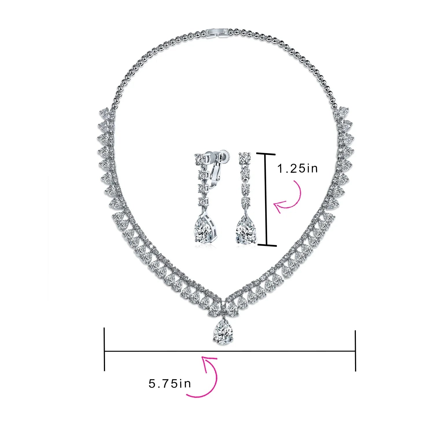 • BRIDAL JEWELRY SET - Includes clip-on earrings and a necklace adorned with over 50 dazzling cubic zirconias in round and pear shapes, beautifully arranged in a starburst pattern. The necklace offers a substantial weight and is fastened with an interlocking latch clasp and wing closure for a secure and sophisticated fit.