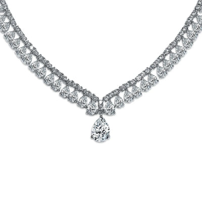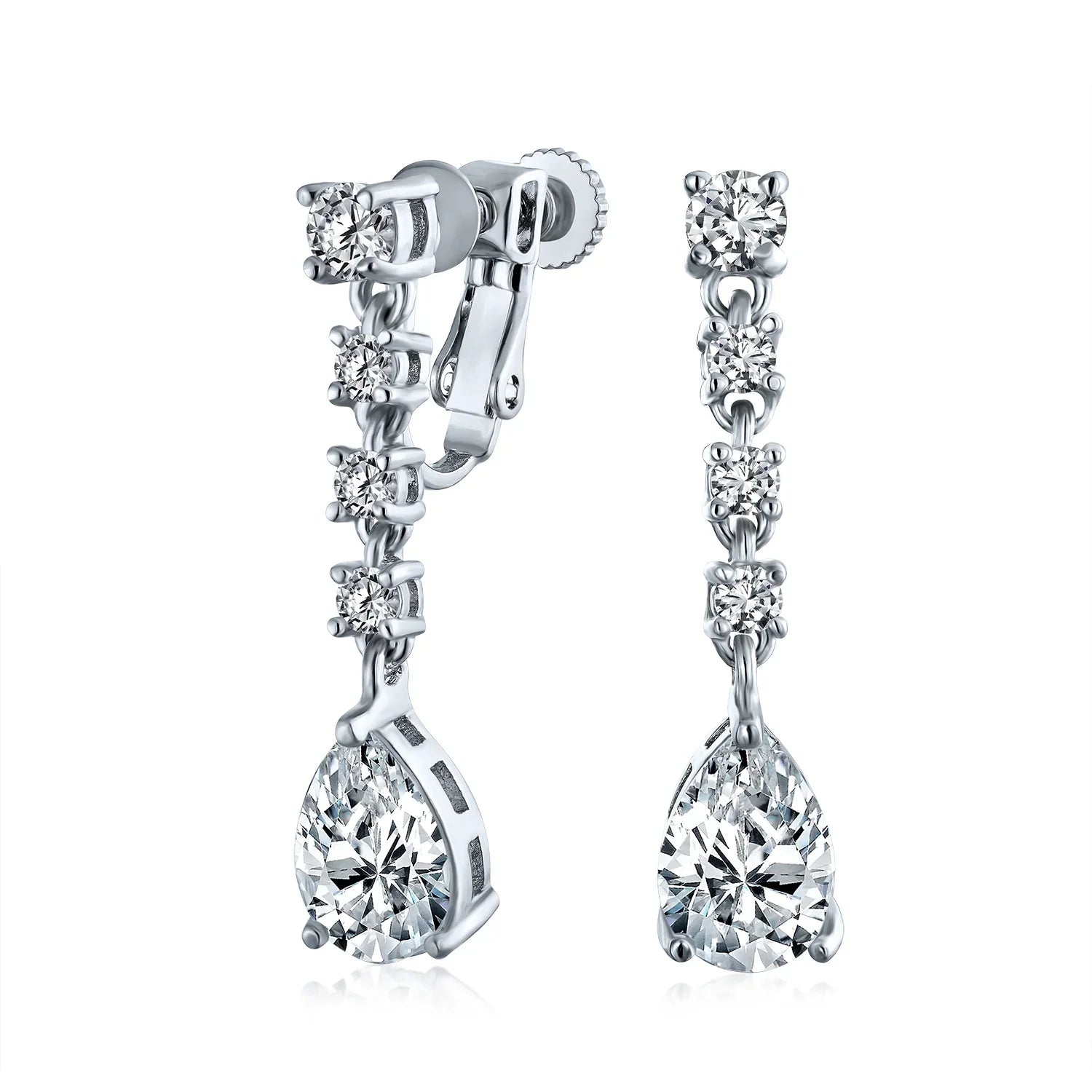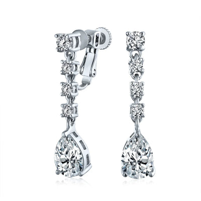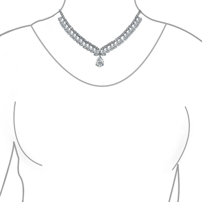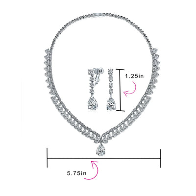 • Introducing our timeless glam CZ statement necklace, designed to make her shine. This exquisite piece includes matching CZ dangling clip-on earrings. Specially designed with a screw-on back for non-pierced ears. Perfect bridal jewelry set for any fashion-forward lady. Crafted with care, our stunning April birthstone jewelry is an ideal gift. Rhodium plated for long-lasting brilliance and extra radiance.