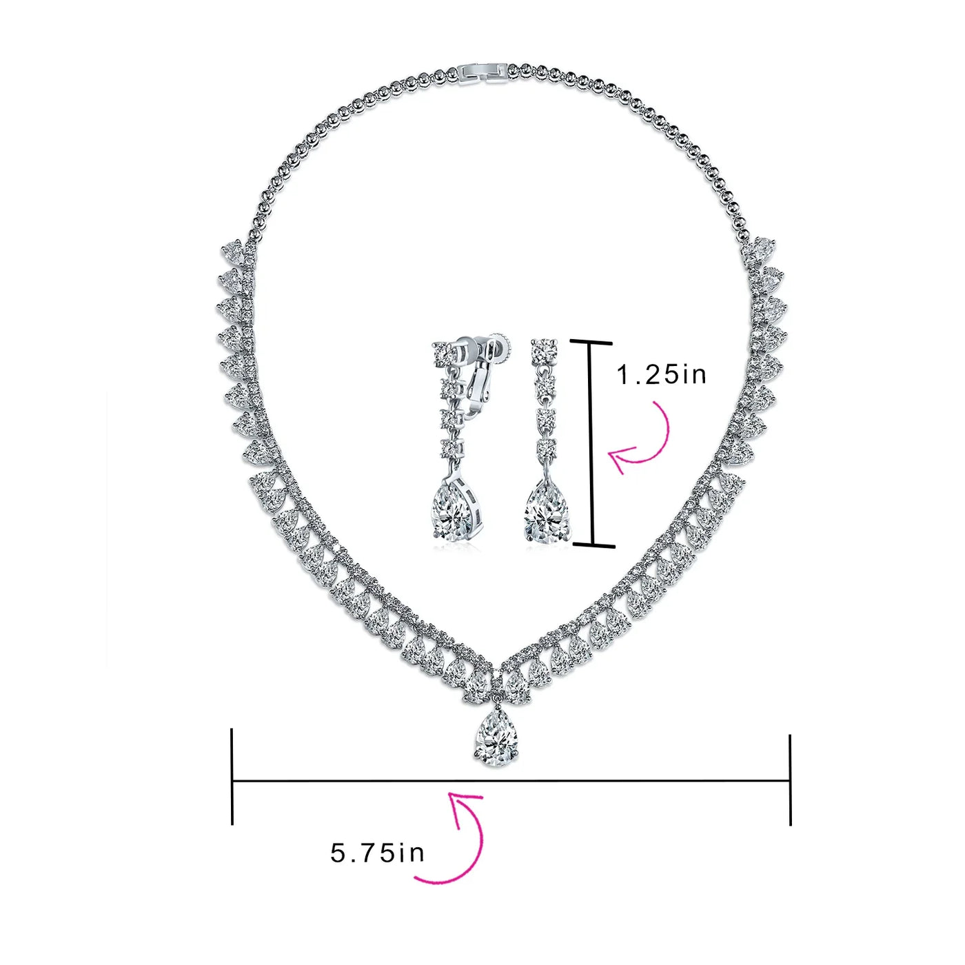 Vintage Bridal CZ Solitaire Teardrop Necklace & Chandelier Earrings Jewelry Set - Bling Jewelry
