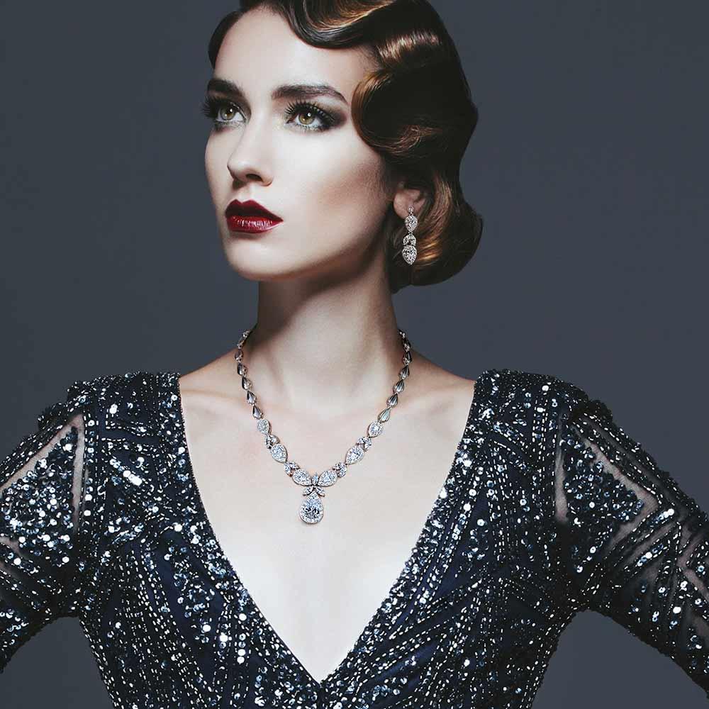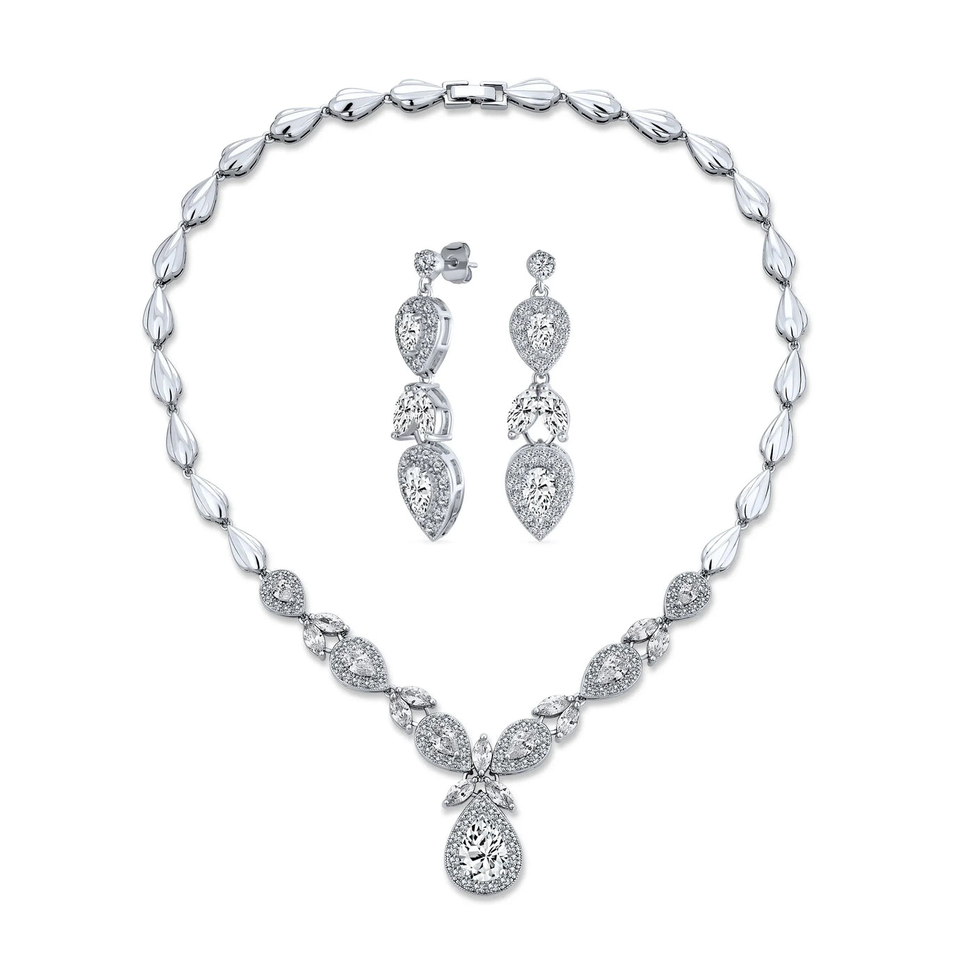 • BRIDAL JEWELRY SET - Vintage Style Necklace Earrings: Featuring dazzling teardrop and marquise cubic zirconias, this exquisite necklace showcases an elegant Art Deco design. Its substantial weight and secure interlocking clasp ensure it stays perfectly in place, making it ideal for any special occasion.