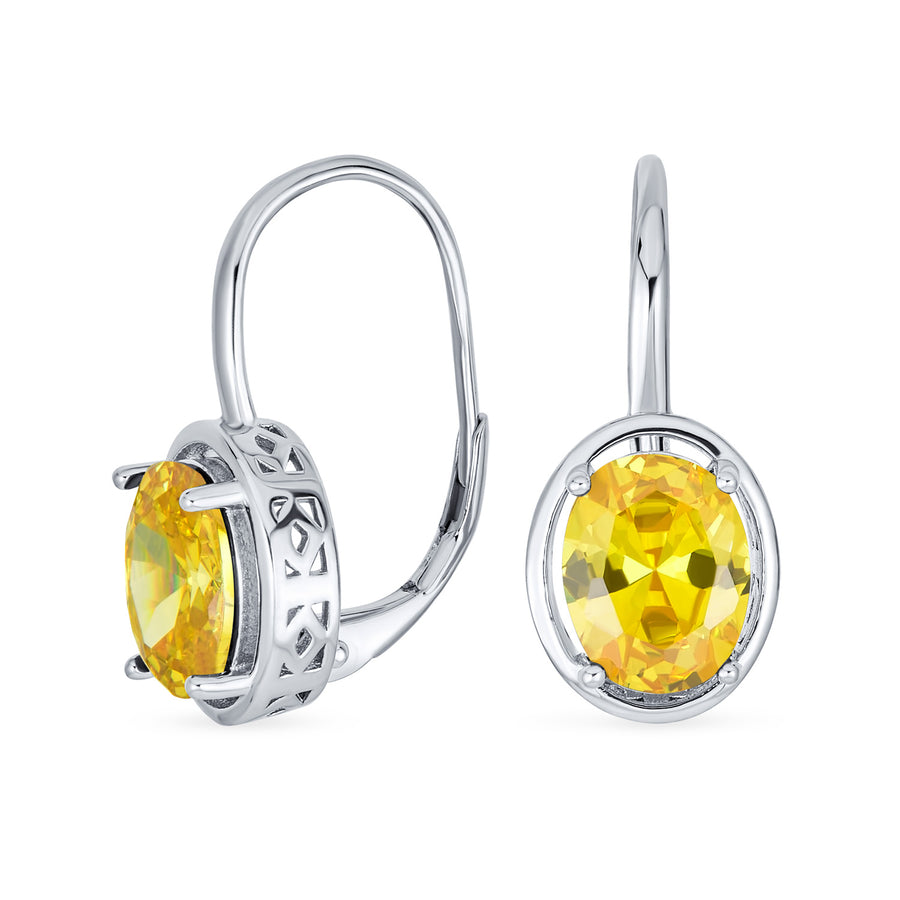 - A perfect choice for ladies who like to sparkle and shine, our 4 prong set CZ lever back earrings are a sensational accessory to help finish off her chic look. Featuring oval cubic zirconia stone and made entirely of sterling silver, these will get her in the mood to shine. An affordable sterling silver oval cut CZ lever back earring should be at the top of every fashionable women's wish list. These sterling silver lever back earrings are rhodium plated to resist tarnish and maintain their shine for many years to come. She will add a touch of contemporary style to her look and want to wear our very pretty cubic zirconia oval earrings with everything in her wardrobe.