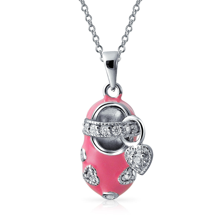 - BEAUTIFUL DESIGN - The pitter-patter of little feet is music so sweet, celebrated in this playful pendant necklace. Featuring pink enamel, sparkling Cz accents and a shimmering heart dangle charm. A darling gift for new moms.