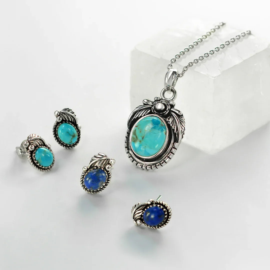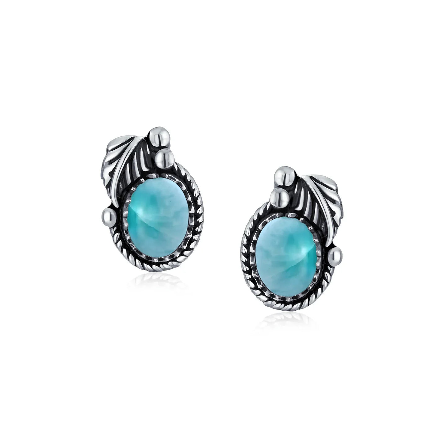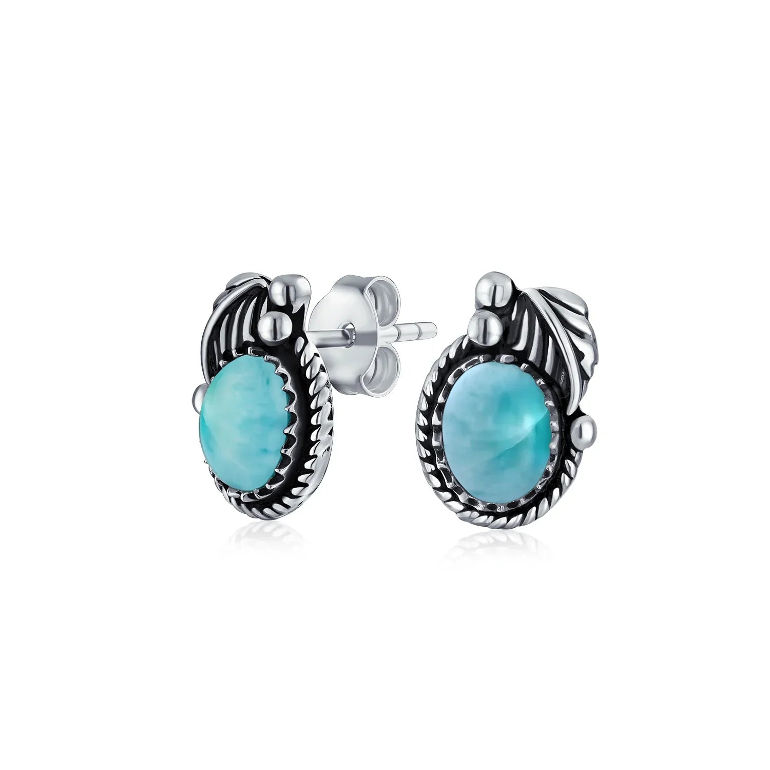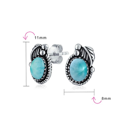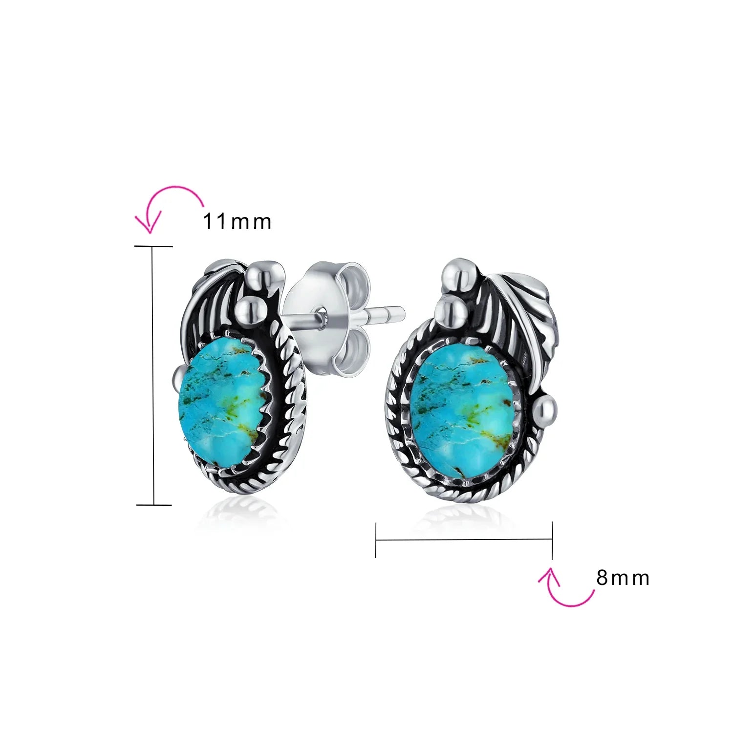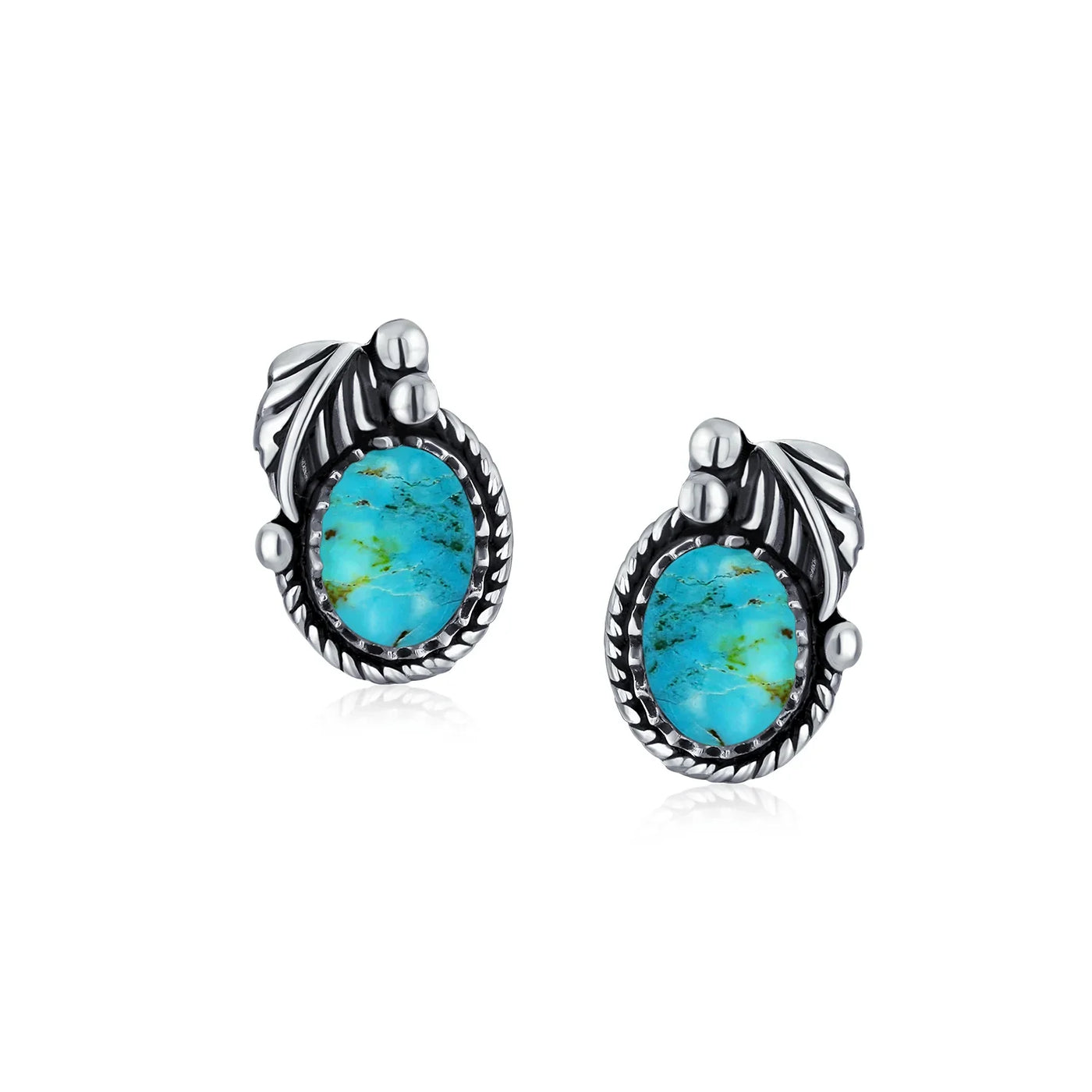 - Small Delicate turquoise stud earrings may be small but do not underestimate the punch they can provide to any outfit. A blue turquoise stone provides just the right amount of color to any outfit, plus the sterling silver leaf detail provides an extra dash of visual interest. An intricate rope setting offsets the beauty of the oval dome blue stone in the center of the earring is bezel set . The leaf detail is also a beautiful way to show off your nature lover side. Turquoise is the birthstone for December, and so these sterling silver stud earrings would be a great gift idea for anyone with a December birthday. Please note that because these are reconstituted stones some pieces may vary slightly in color.