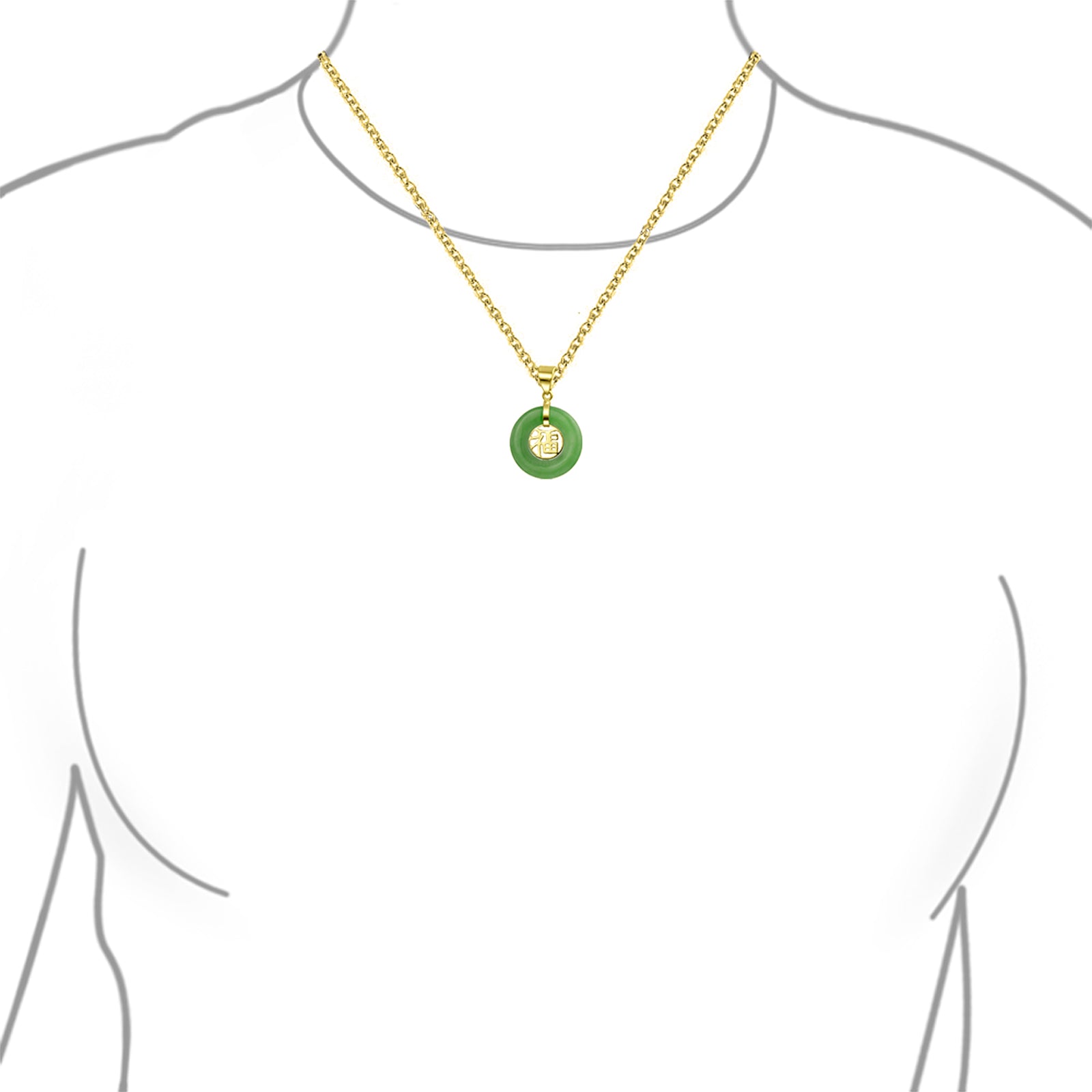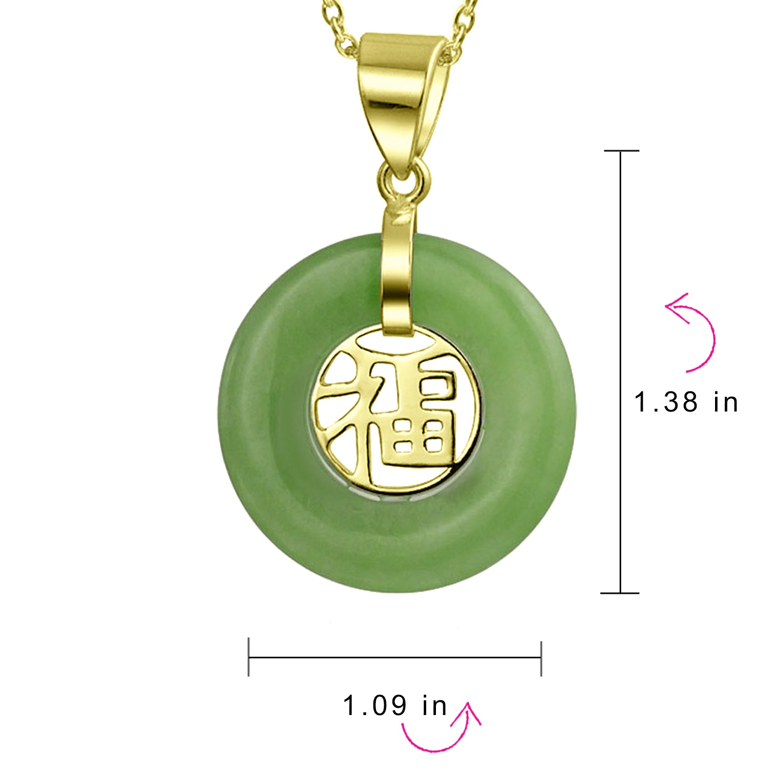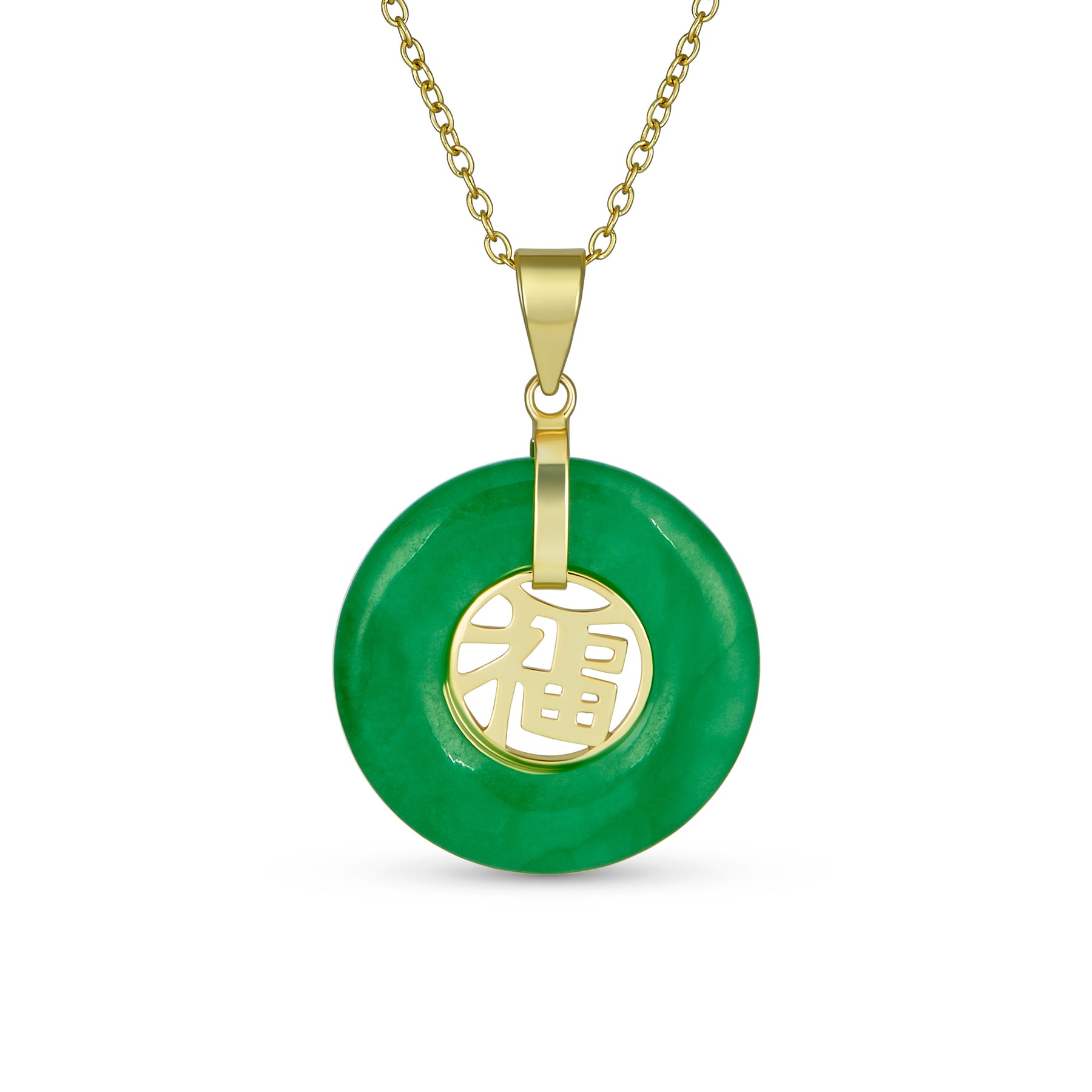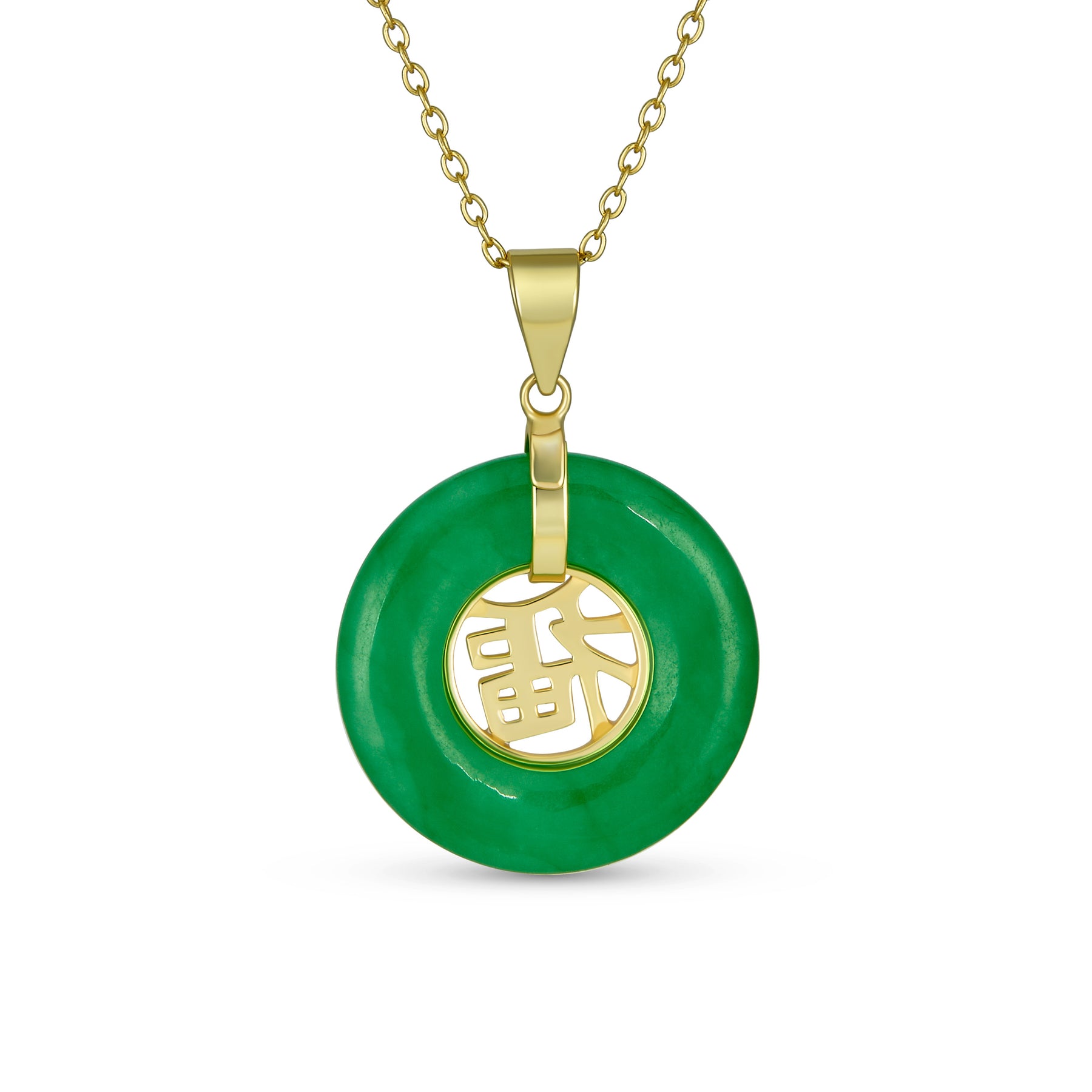 - Honor the enduring beauty of a meaningful cultural symbol with this stylish good fortune dounut shape Jade necklace, with a Chinese Hanzi symbol in center wishing you good fortune.