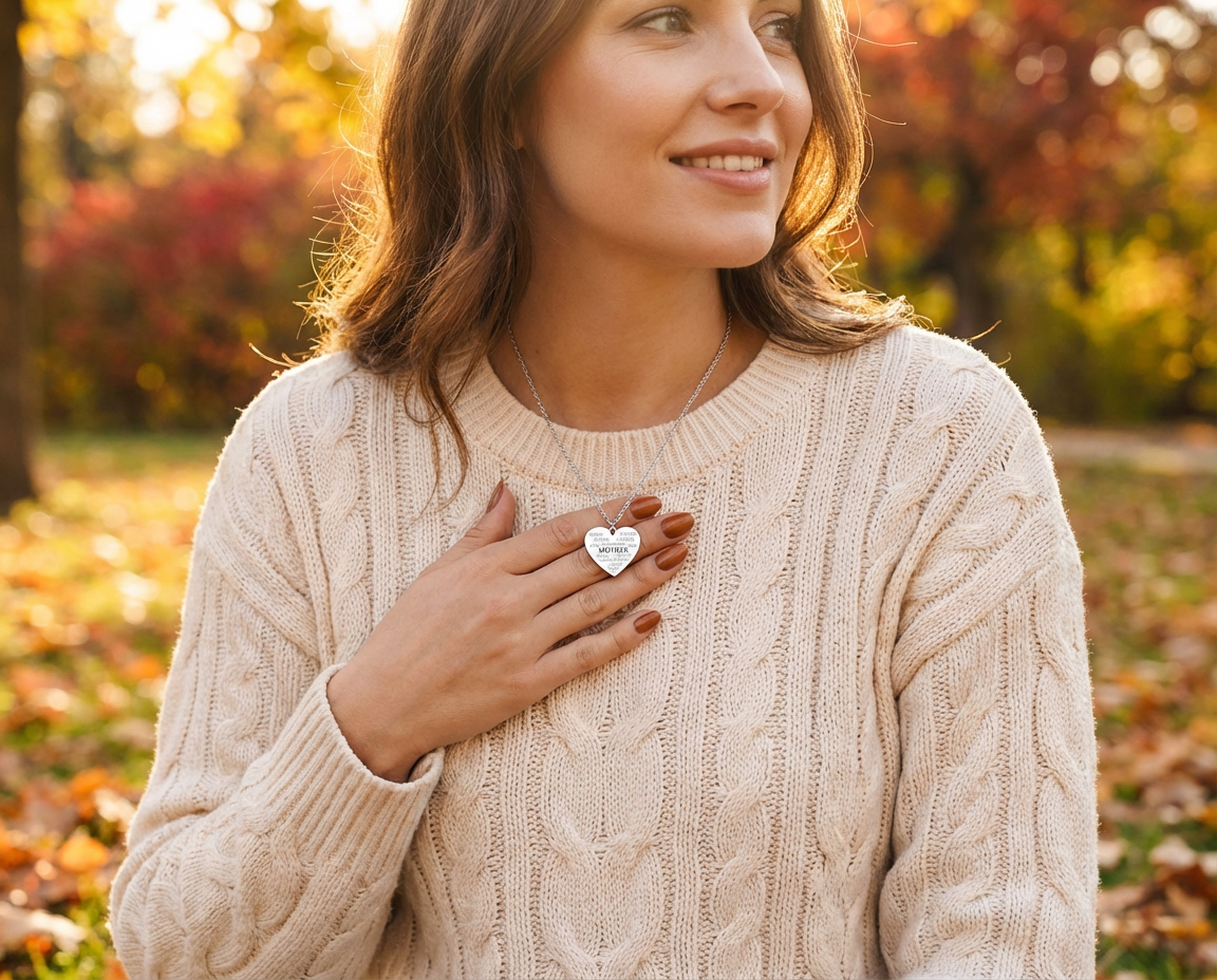 - Express your love with this heart-shaped necklace, perfect for mothers. Features heartfelt messages. Ideal gift for beloved wives. Timeless keepsake.