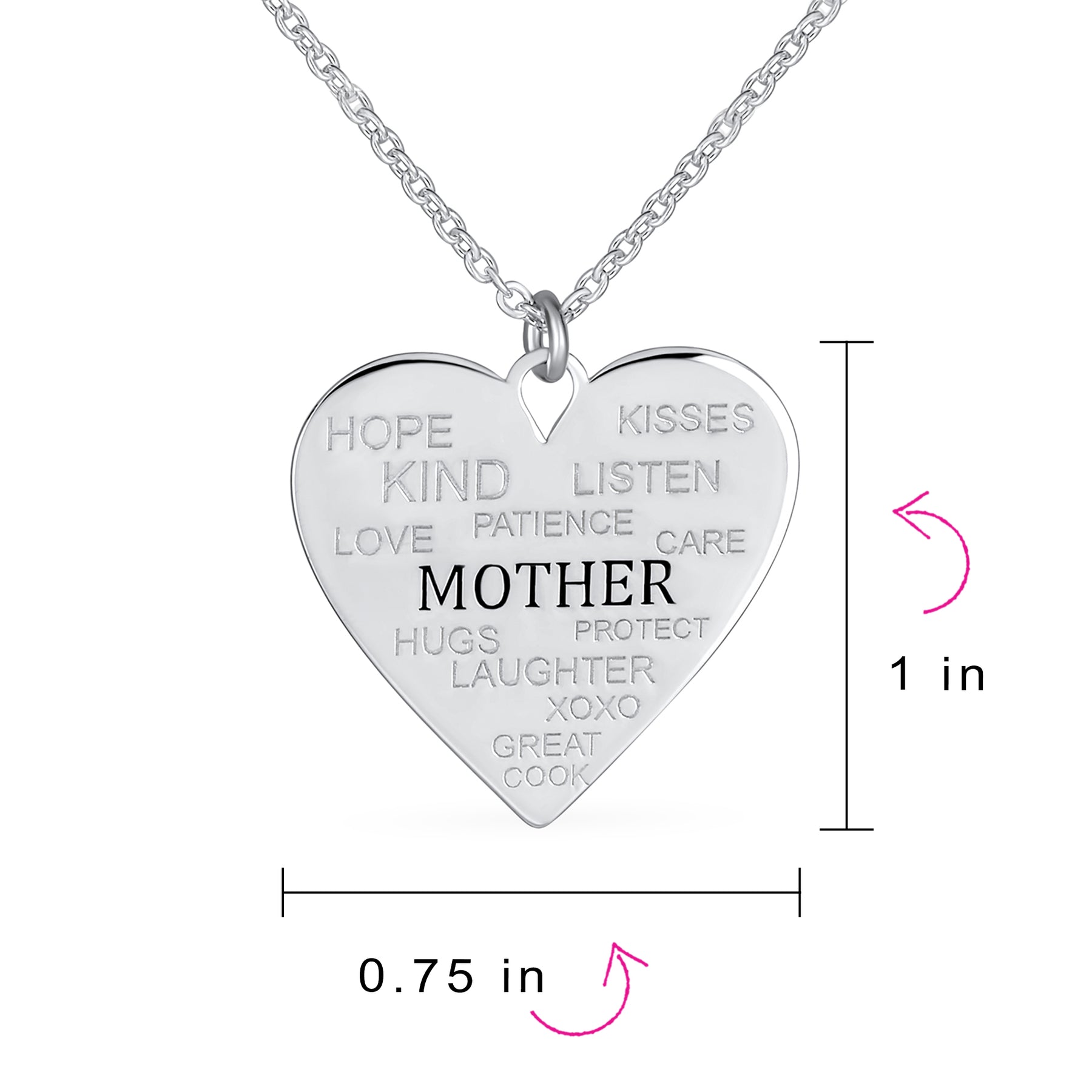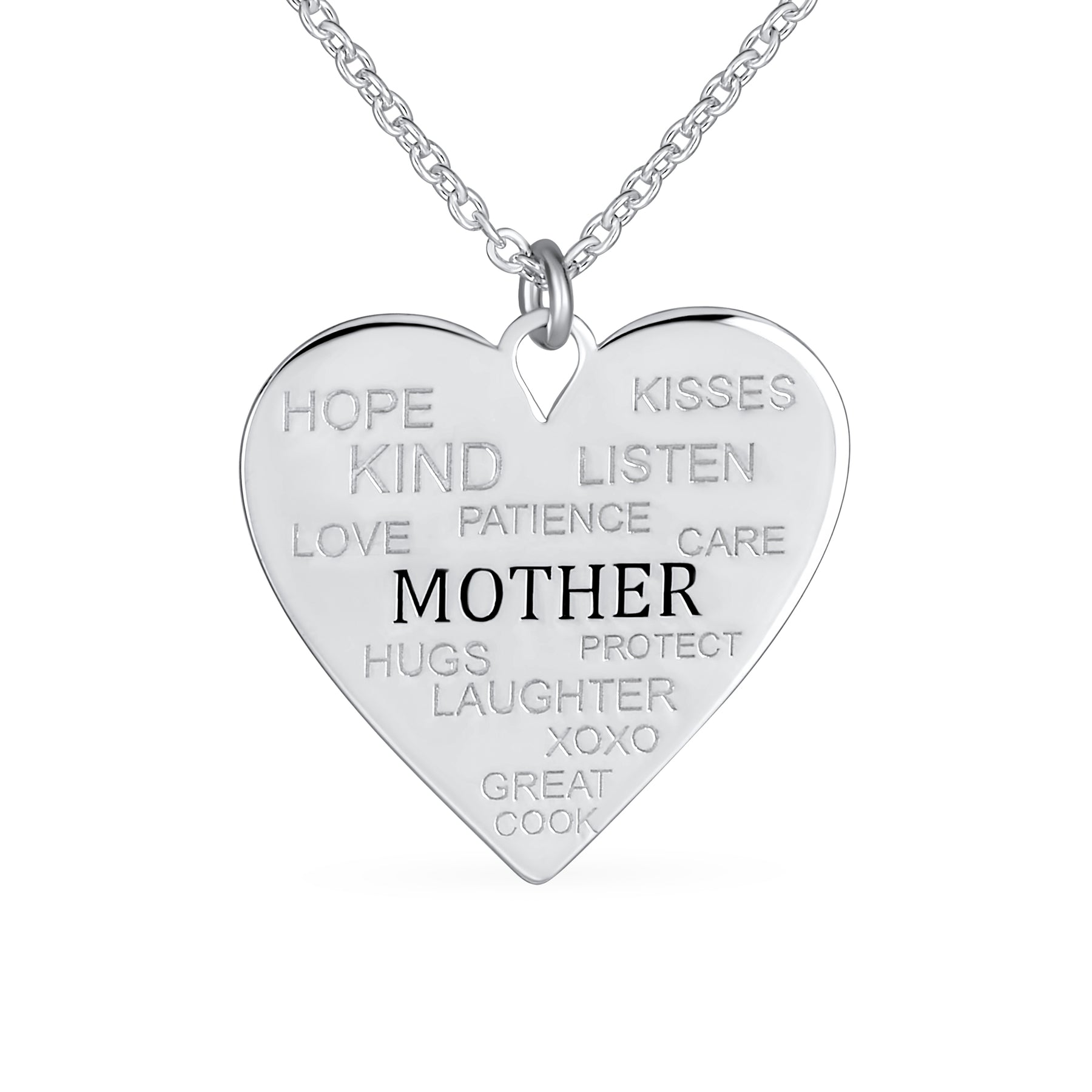 - Celebrate your mothers words of love inspiration with this sentimental style heart shaped necklace. This beautiful mother necklace is surround with the words home, kisses, hugs, laughter, and more. For the most beloved wife and mom express your love for motherhood with this heartfelt pendant. Its a special gift that she will keep forever.