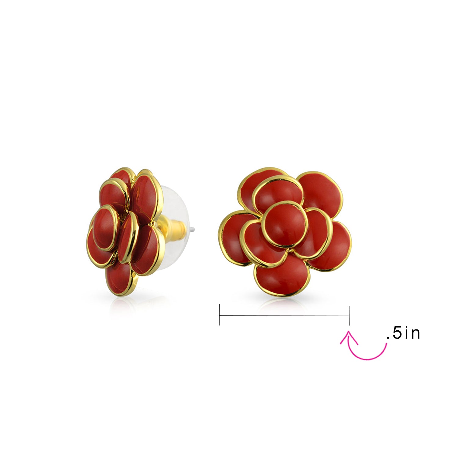 - STUNNING DESIGN - Elevate your style with these enchantingly feminine stud earrings. Featuring a charming floral red rose design crafted from gold plated brass and red enamel, these earrings will add a touch of retro flair to any outfit. Perfect for enhancing pierced ears with a unique and eye-catching look.
