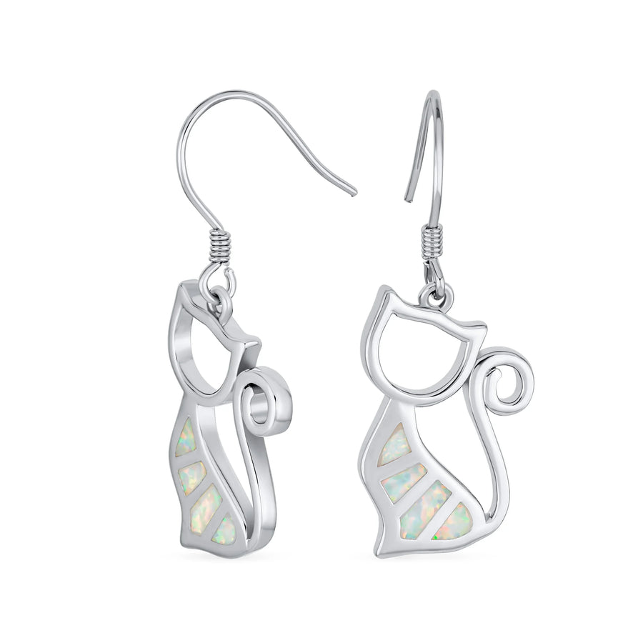 Gemstone Opal Cat Dangle Gemstone Earrings in Sterling Silver with Fish Hook - Bling Jewelry