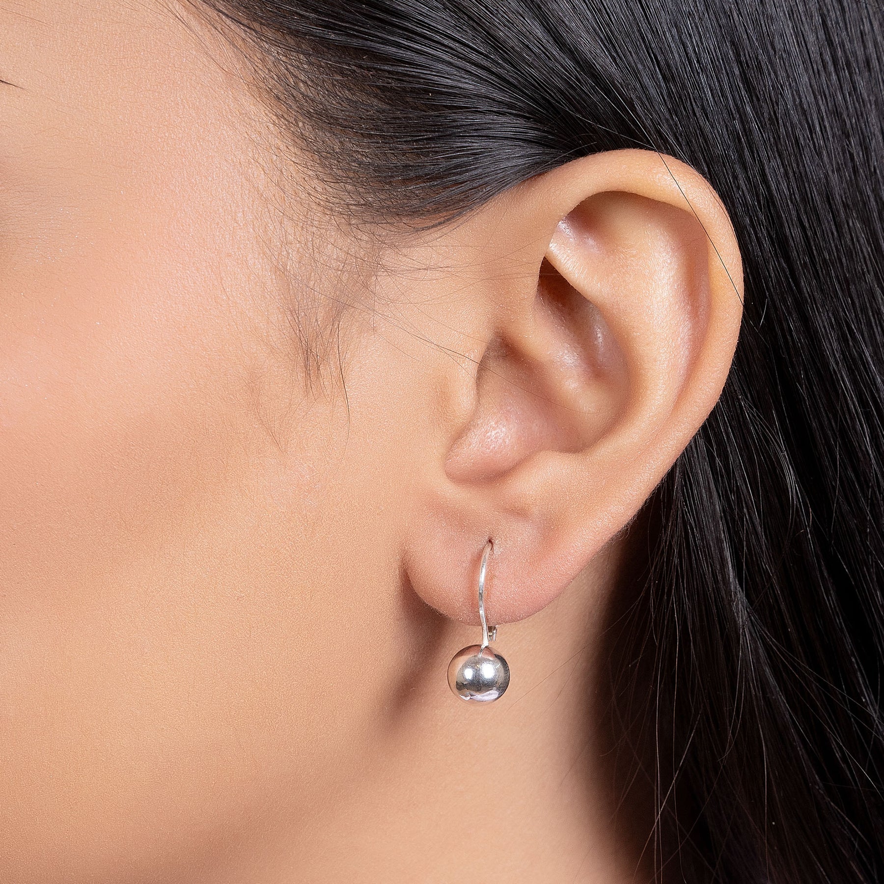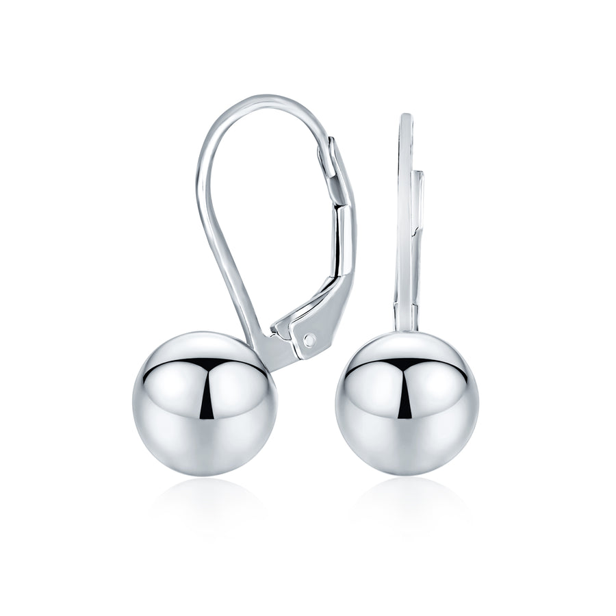 - Enhance any outfit with sterling silver bead ball earrings. These versatile, classic drop earrings are a jewelry collection must-have. A fresh alternative to traditional hoops or studs, they add a fun twist. Crafted in 925 sterling silver, our 8MM bead ball studs fit securely with lever back. The sophisticated design features a single, dangling 8MM bead, perfect for any ensemble. Order your pair today!