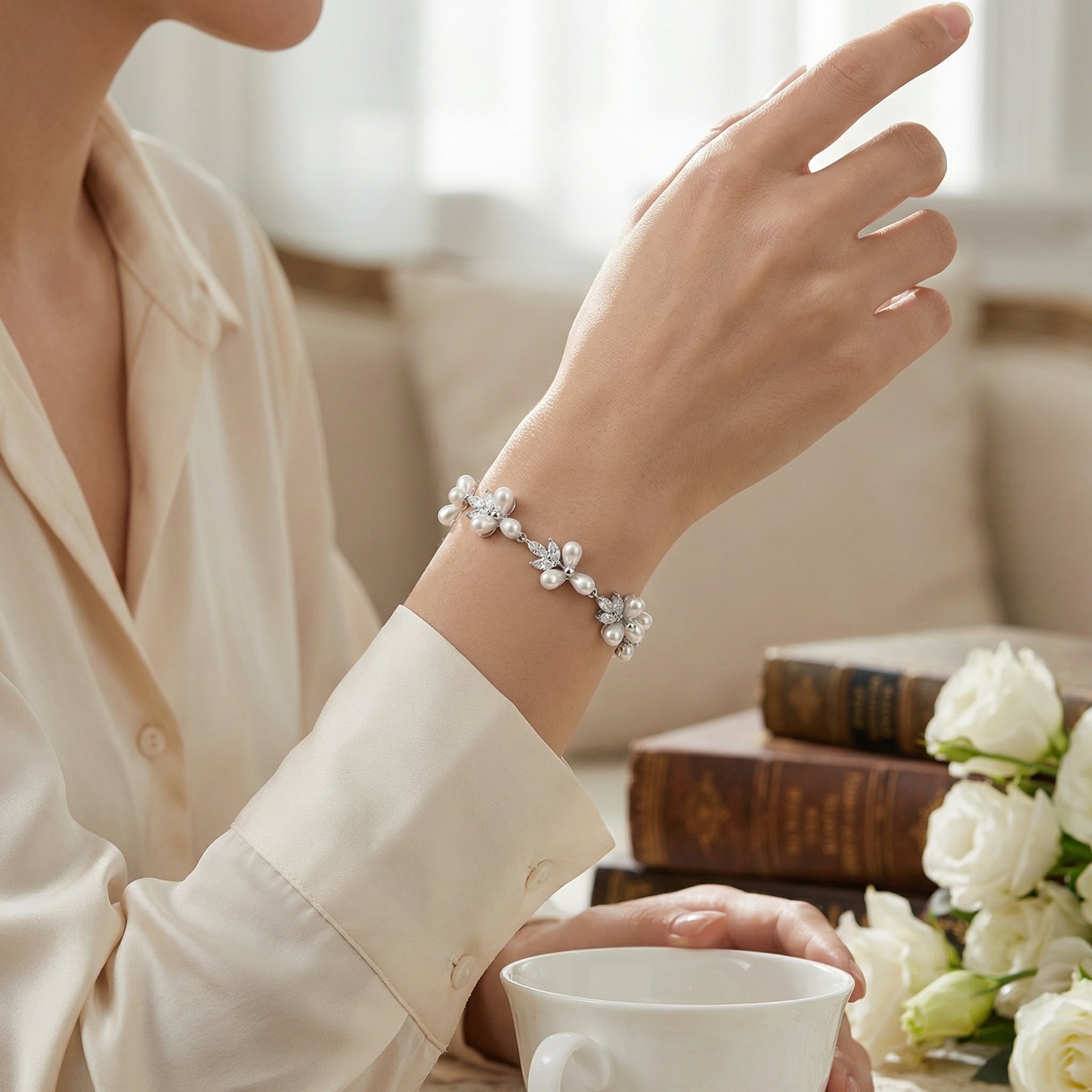 • Traditional wedding jewelry pearl & silver bracelet is versatile with have high luster and will be a tasteful addition to your style for any formal party, prom or .