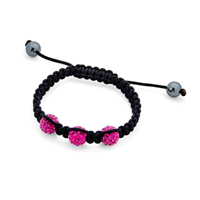 - Elevate your style this school season with a Shamballa-inspired bracelet. Make her shine with this trendy crystal disco ball bracelet. Three pink crystal balls are woven on a durable nylon cord. Finished in a traditional macramé style for a classic look. Adjustable fitting ensures easy wear and removal. Two Hematite balls add a fun dangle. Shamballa-inspired bracelets are lightweight and Perfect for anyone. Inspired by Mads Kornerup's original Shamballa Jewels designs. For authentic Shamballa Jewels, visit their official site.