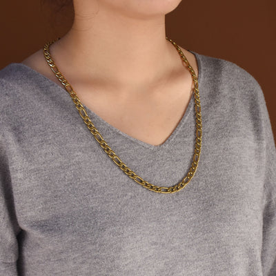Heavy Solid 7MM Gold Plated Stainless Steel Figaro Chain Necklace Lobster Claw