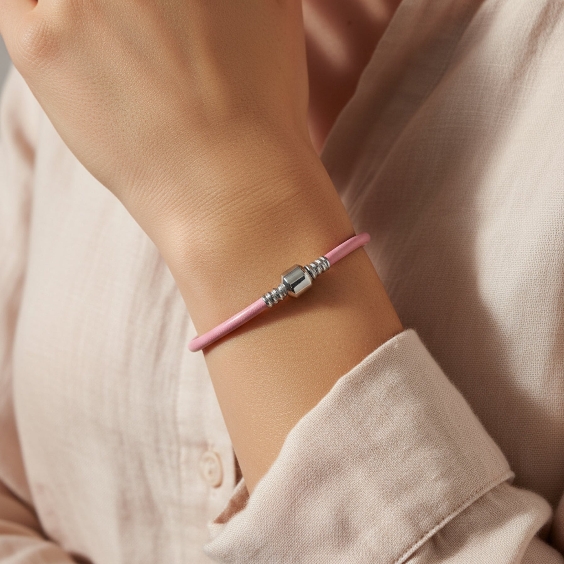 - Create your own European story bead bracelet with our chic red leather cord bracelet featuring a .925 sterling silver barrel clasp. This elegant leather cord bracelet has a 3mm diameter, fitting Oriana and many other bead styles. Express your unique personality with your choice of beads and charms. This fashionable bracelet makes a perfect gift or a must-have starter for your collection. The .925 sterling silver barrel clasp ensures security and comfort.