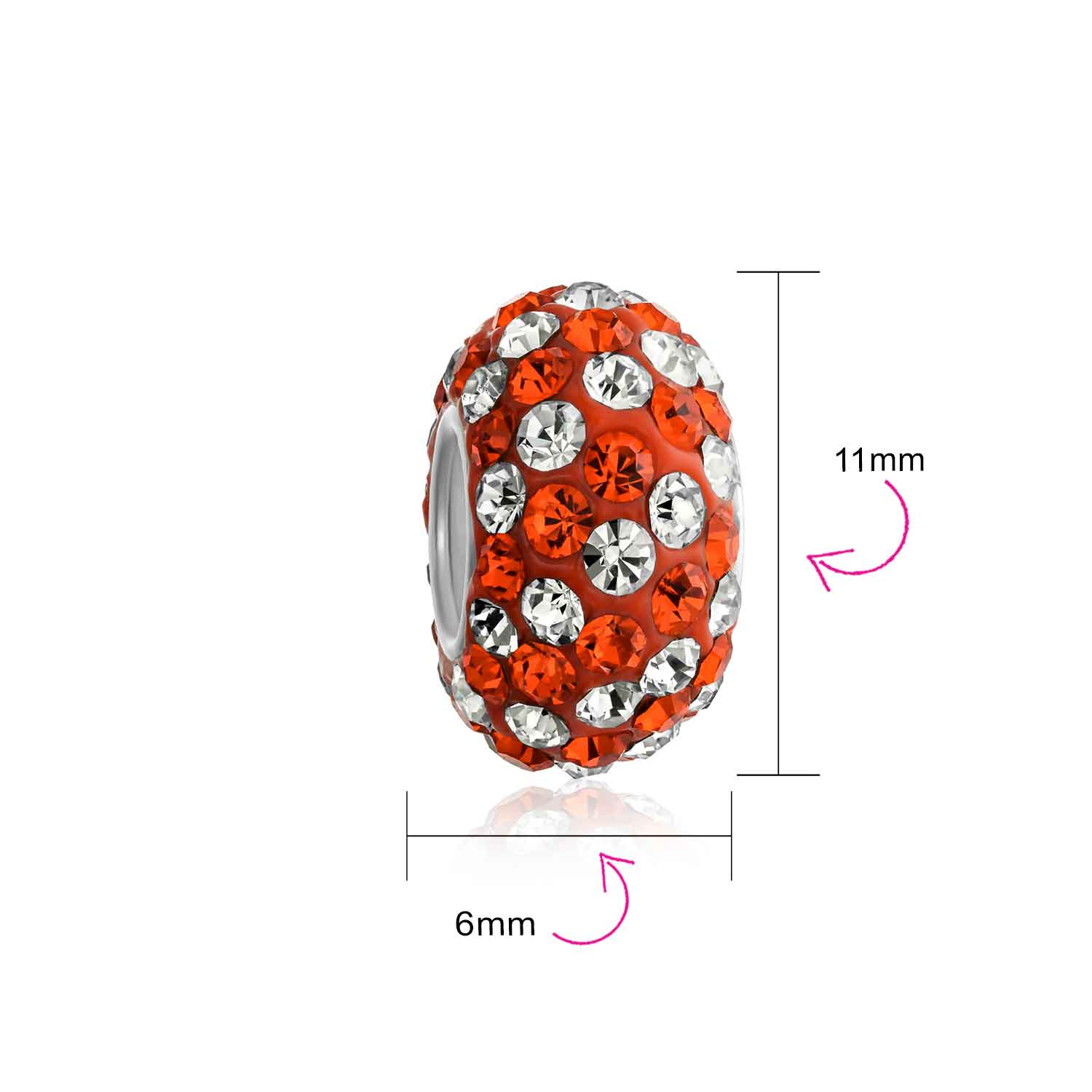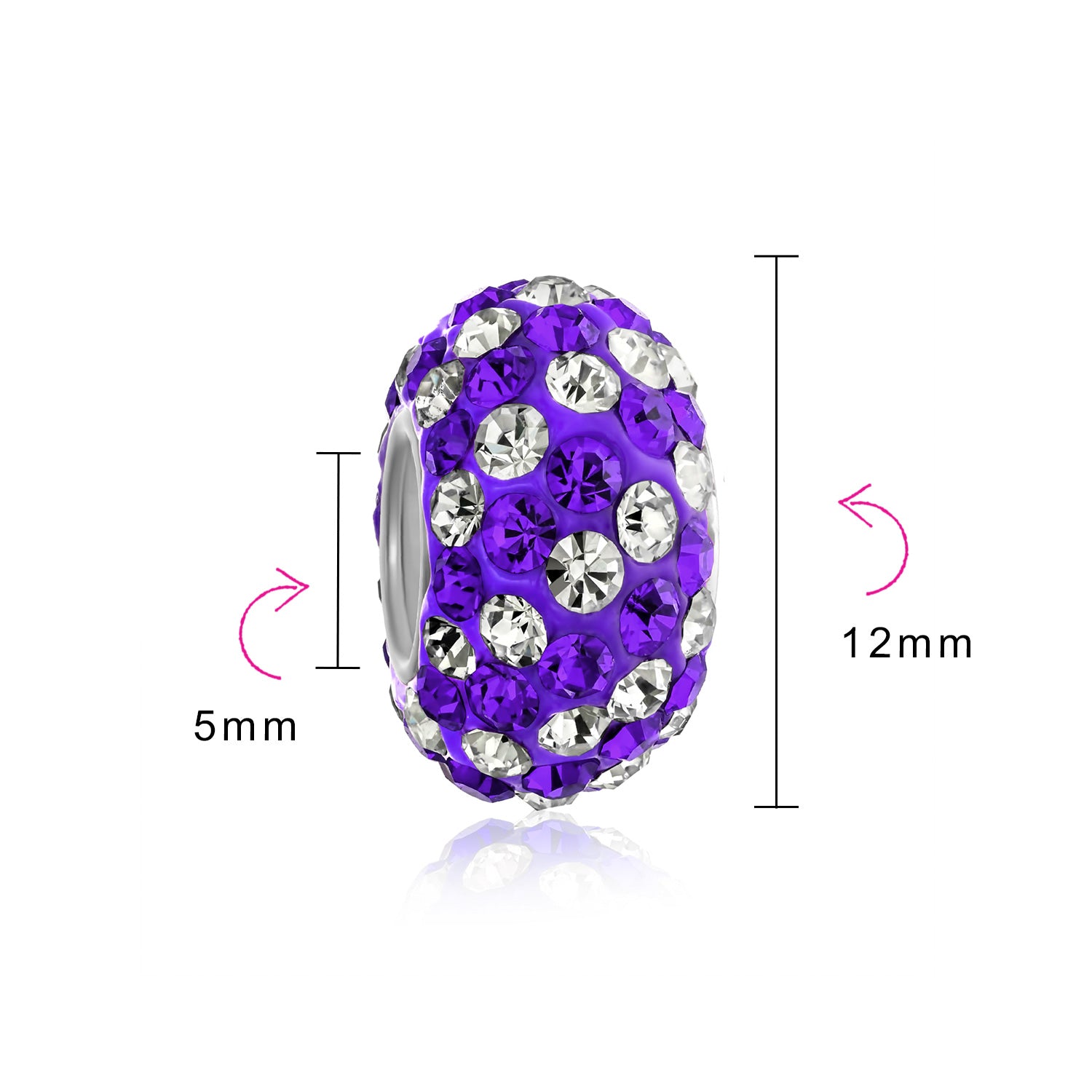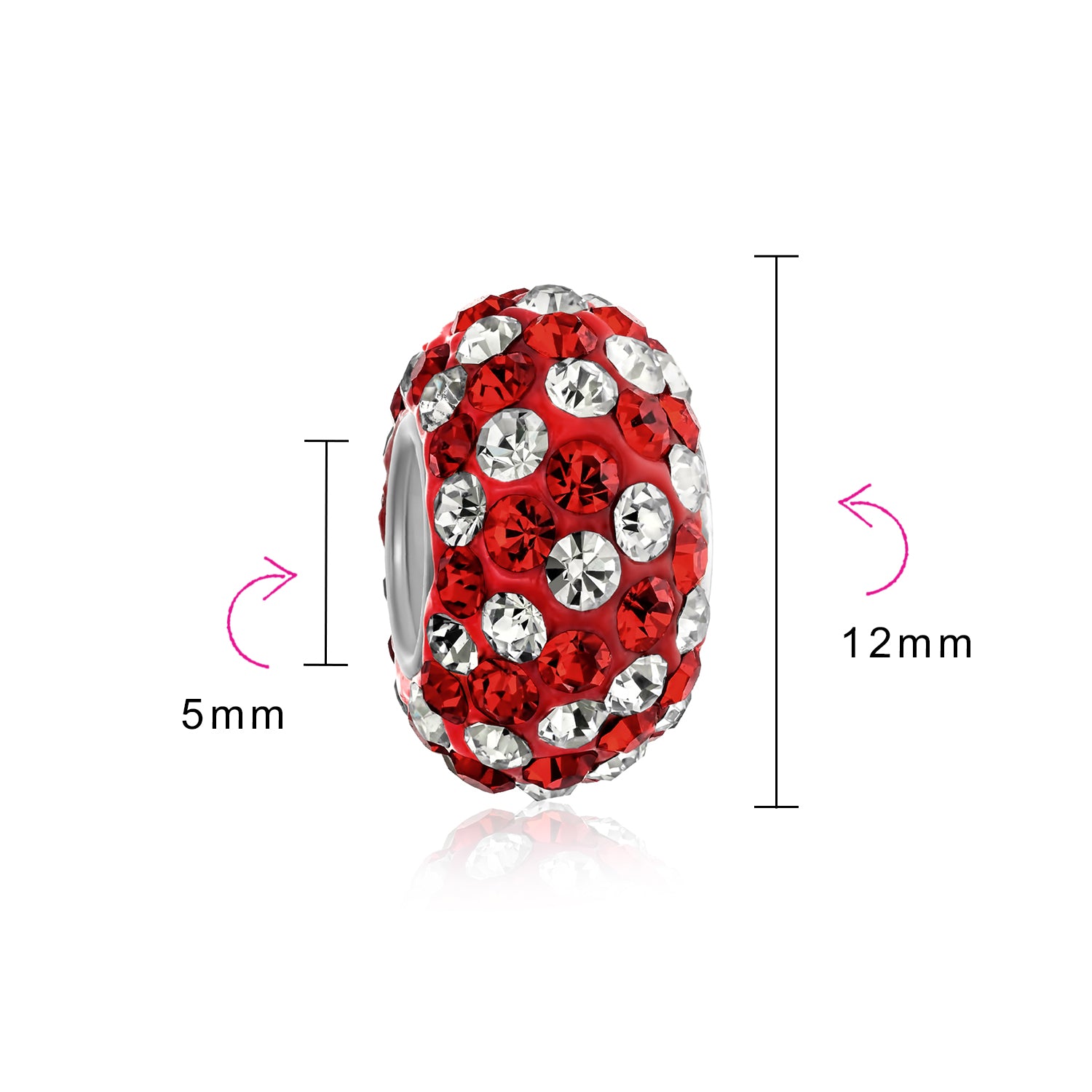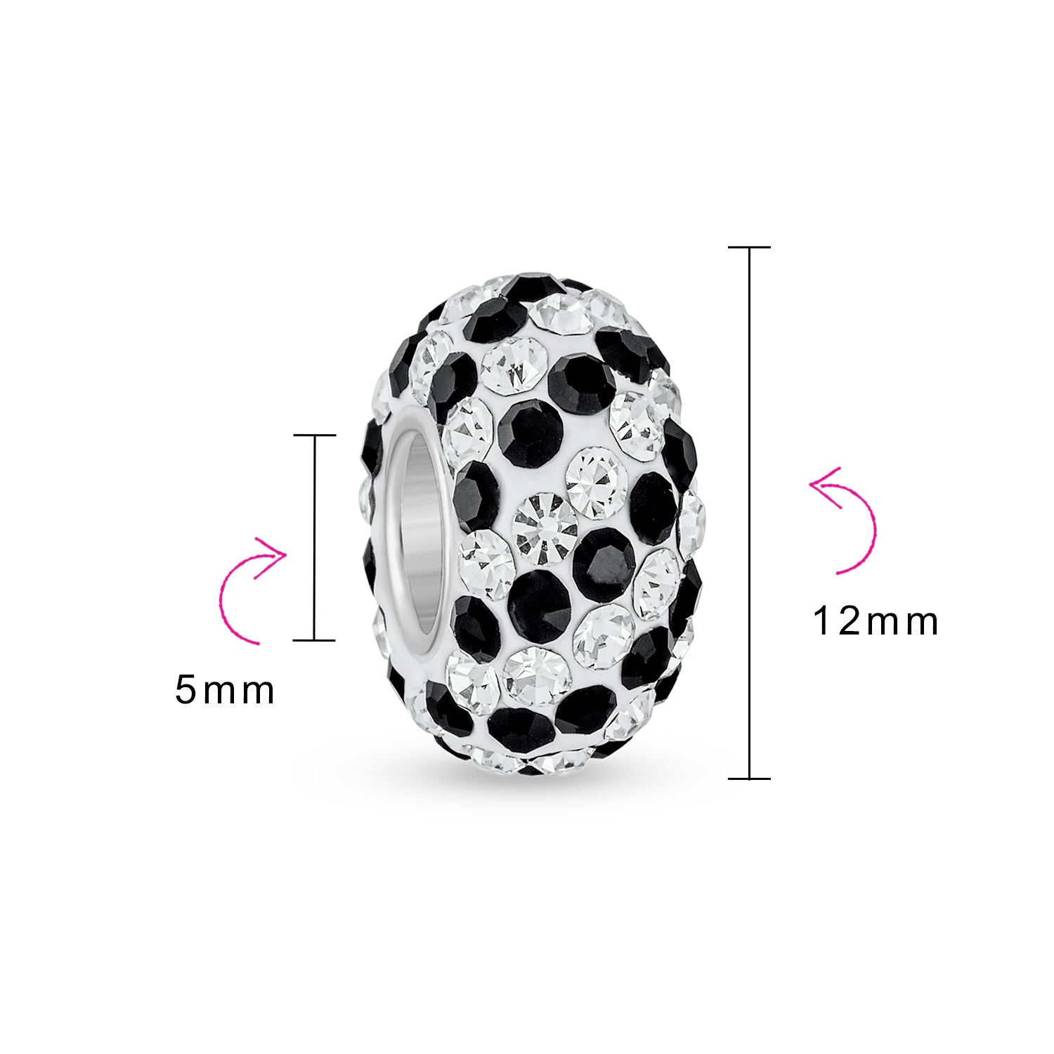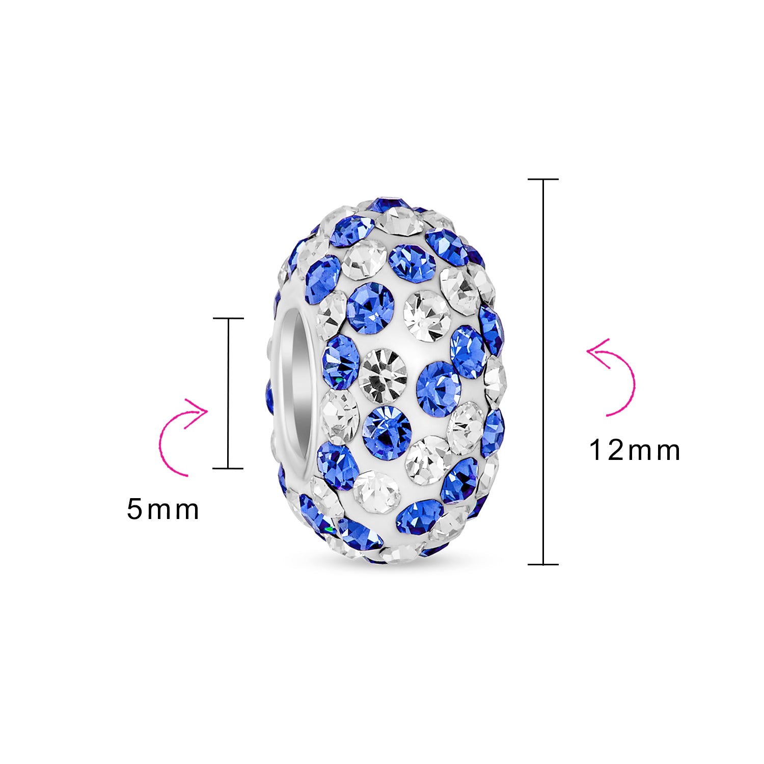 - Measure: 12 MM Diameter, 5 MM Bead Core, Weight: 1.5 Gram, Material: Genuine .925 Sterling Silver, Crystal Encrusted, HYPOALLERGENIC - Lead-Free Nickle-free Each piece is stamped .925 guarantees the quality and craftmanship.