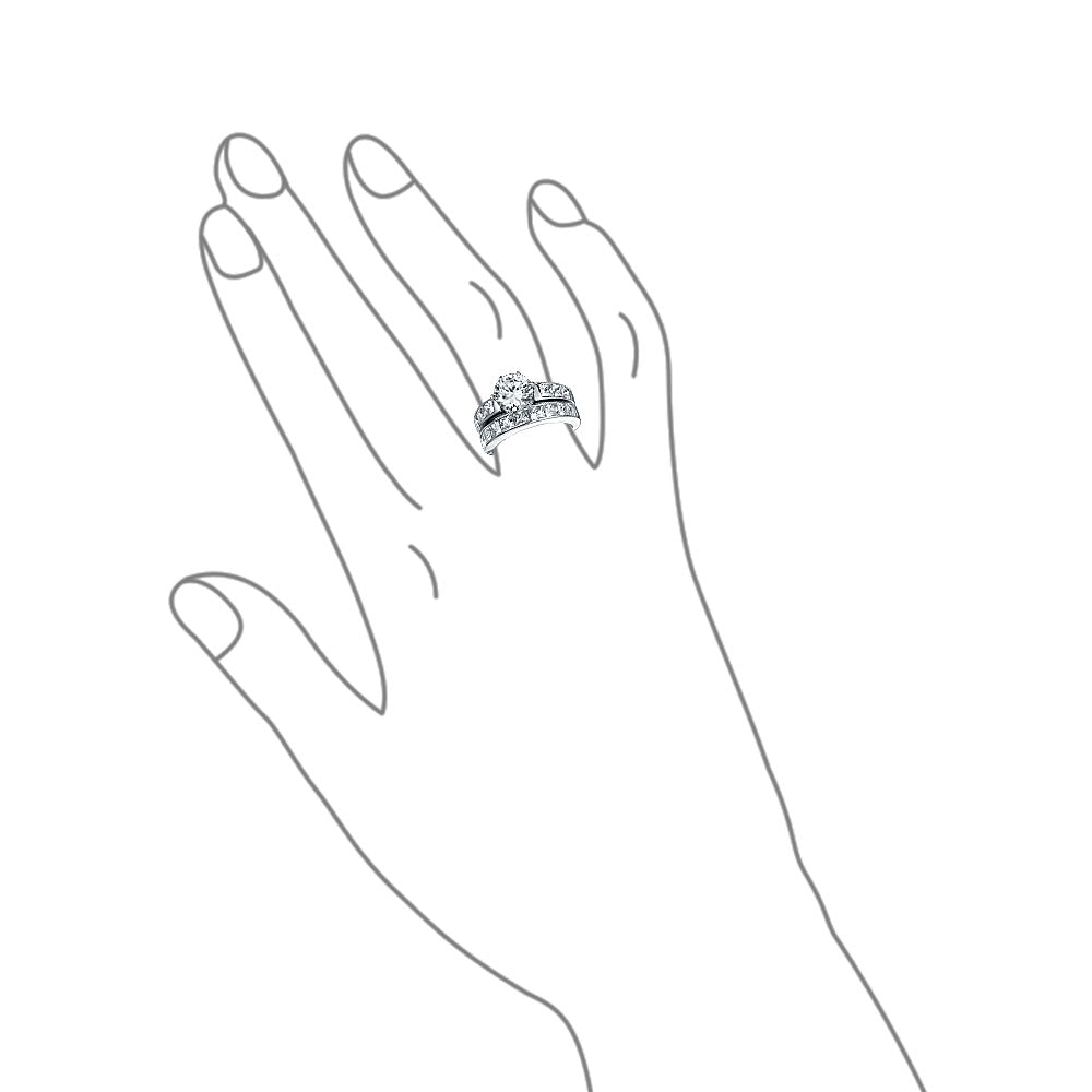 - This classic 2 carat sterling silver ring set features a dazzling round cut cubic zirconia in a six prong setting. Princess cut CZ side stones in channel setting add extra sparkle it symbolizes everlasting love.
