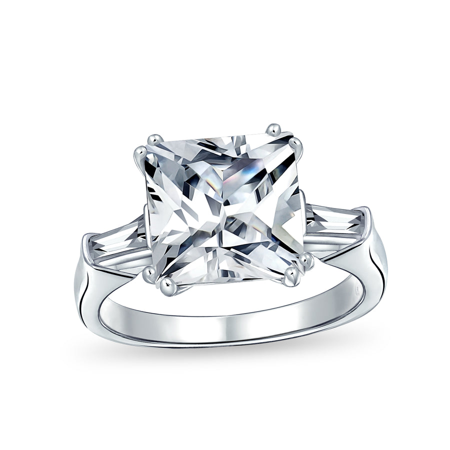 - Take her breath away with this majestic engagement promise ring. This stunning ring features a shimmering, 4.5 CT princess cut square solitaire with baguette side stones. A gorgeous symbol of you and you fiancé's special bond, designed with lustrous 925 sterling silver.