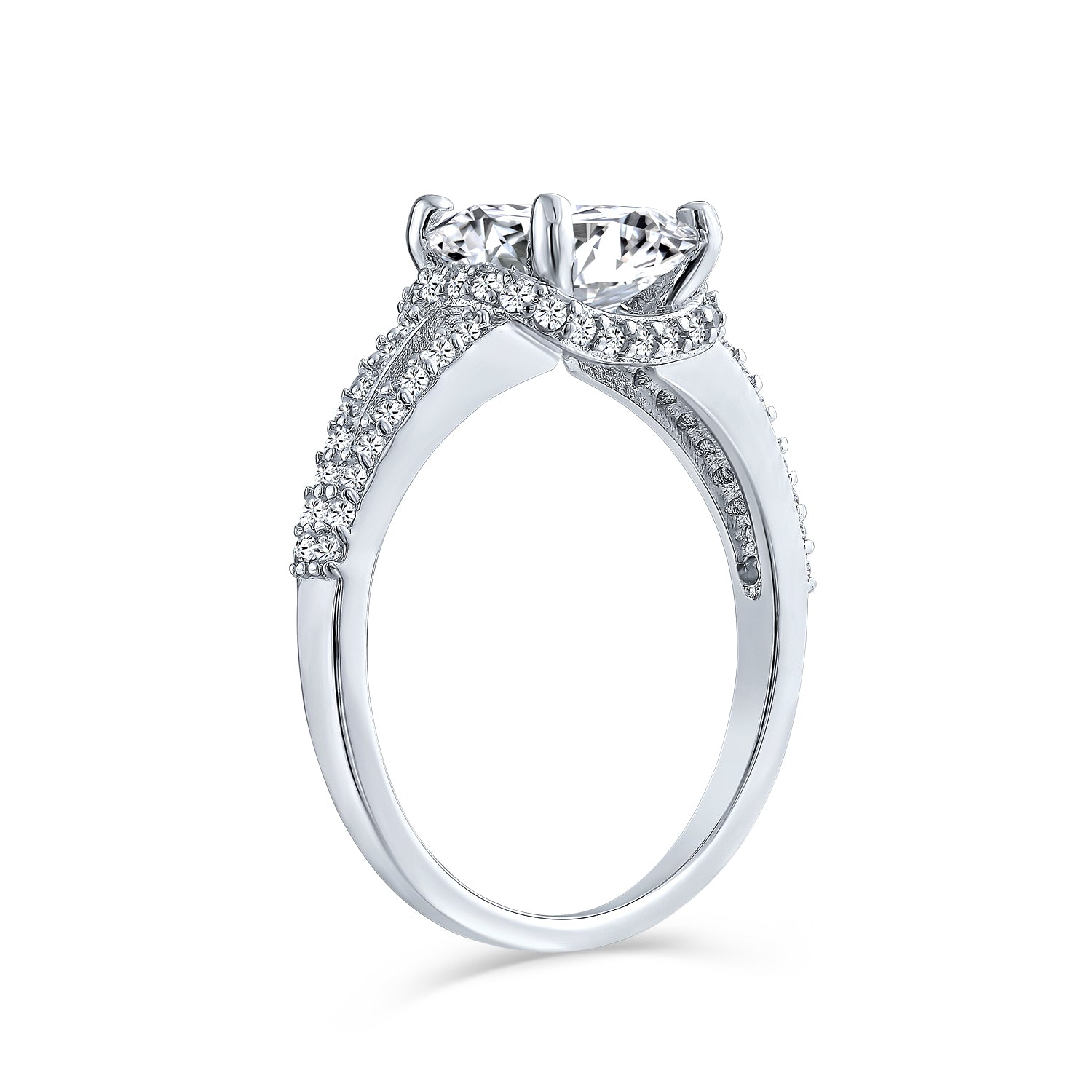 - STUNNING STYLE FOR YOUR SPECIAL SOMEONE - Celebrate your love for your sweetheart with this alluring sterling silver engagement ring. Featuring a brilliant 3CT cushion cut cz stone in a 4 prong setting, at center adorned with a shimmering pave cz band.