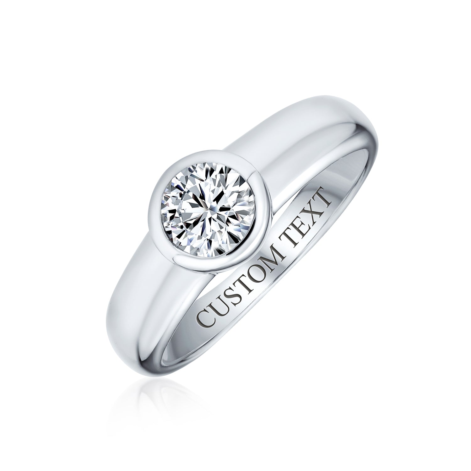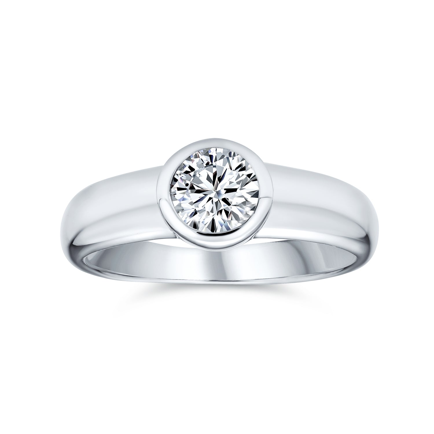• This .75 carat cubic zirconia solitaire engagement ring will leave any woman speechless. The timeless look on this silver .75 CT cubic zirconia solitaire engagement ring will never go out of style. The round, solitaire cubic zirconia stone on this stunning sterling silver solitaire engagement ring is the epitome of elegance. This cubic zirconia solitaire engagement ring is also made from .925 sterling silver, a long lasting material, able to outlive the memories you will surely make with this classic beauty. The medium sized band on this bezel set cubic zirconia engagement ring will fit comfortably on her finger for years into the future. --- This .75 carat cubic zirconia solitaire engagement ring will leave any woman speechless. The timeless look of this silver .75 CT cubic zirconia solitaire engagement ring will never go out of style. The round, solitaire cubic zirconia stone on this stunning sterling silver solitaire engagement ring is the epitome of elegance. This cubic zirconia solitaire engagement ring is also made from .925 sterling silver, a long-lasting material, able to outlive the memories you will surely make with this classic beauty. The medium-sized band on this bezel set cubic zirconia engagement ring will fit comfortably on her finger for years into the future.