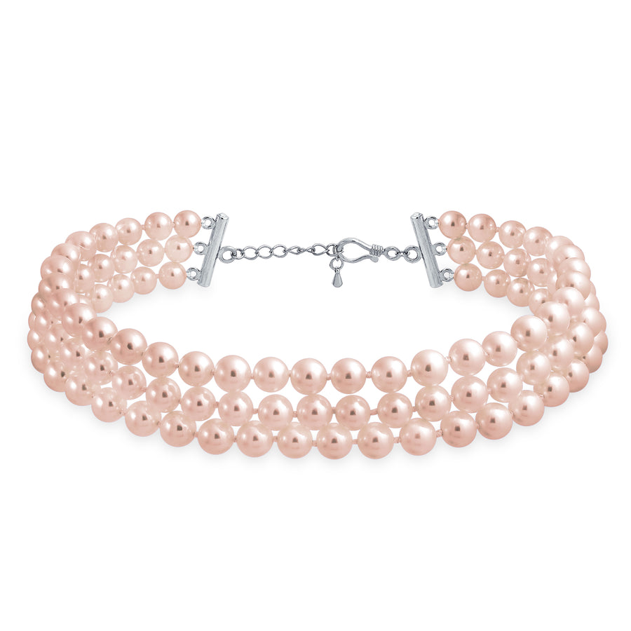 - STUNNING DESIGN - This bridal choker is Princess Diana inspired with 3 strand freshwater pearls. The 8mm simulated pink pearls and rhodium plated backing are elegant. This 13in necklace comfortably dresses up any outfit.