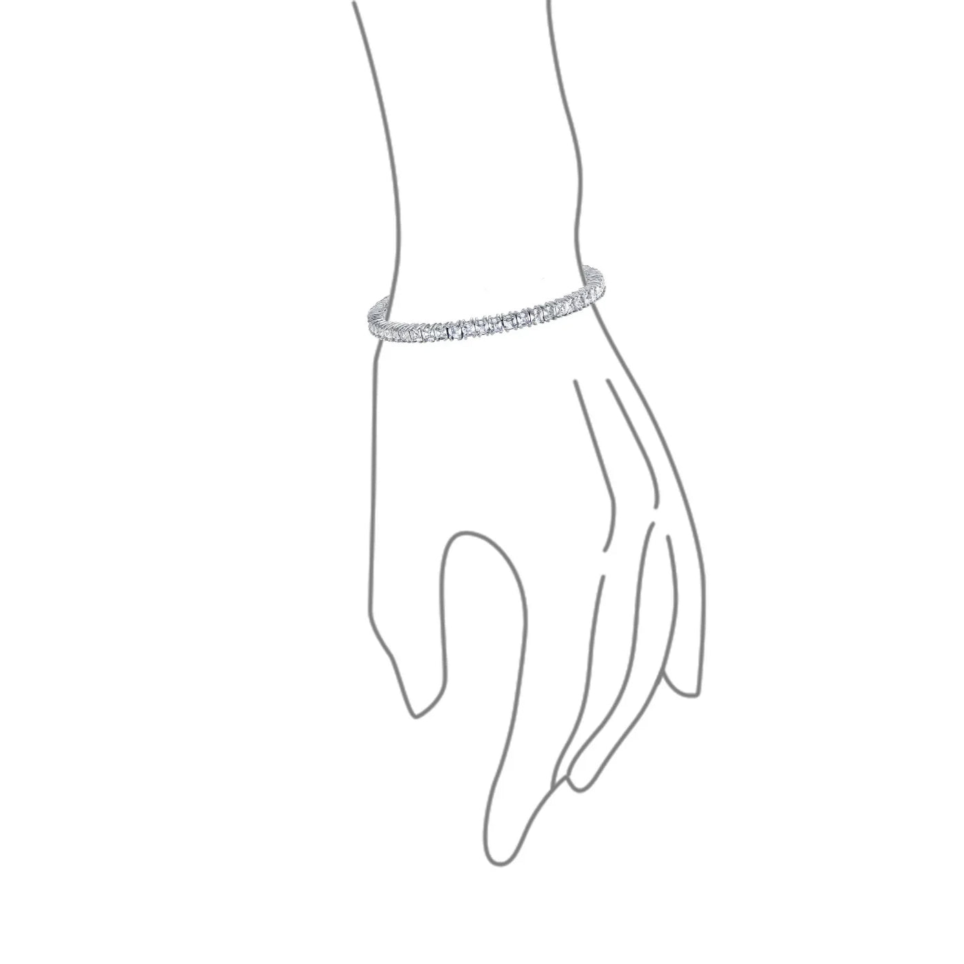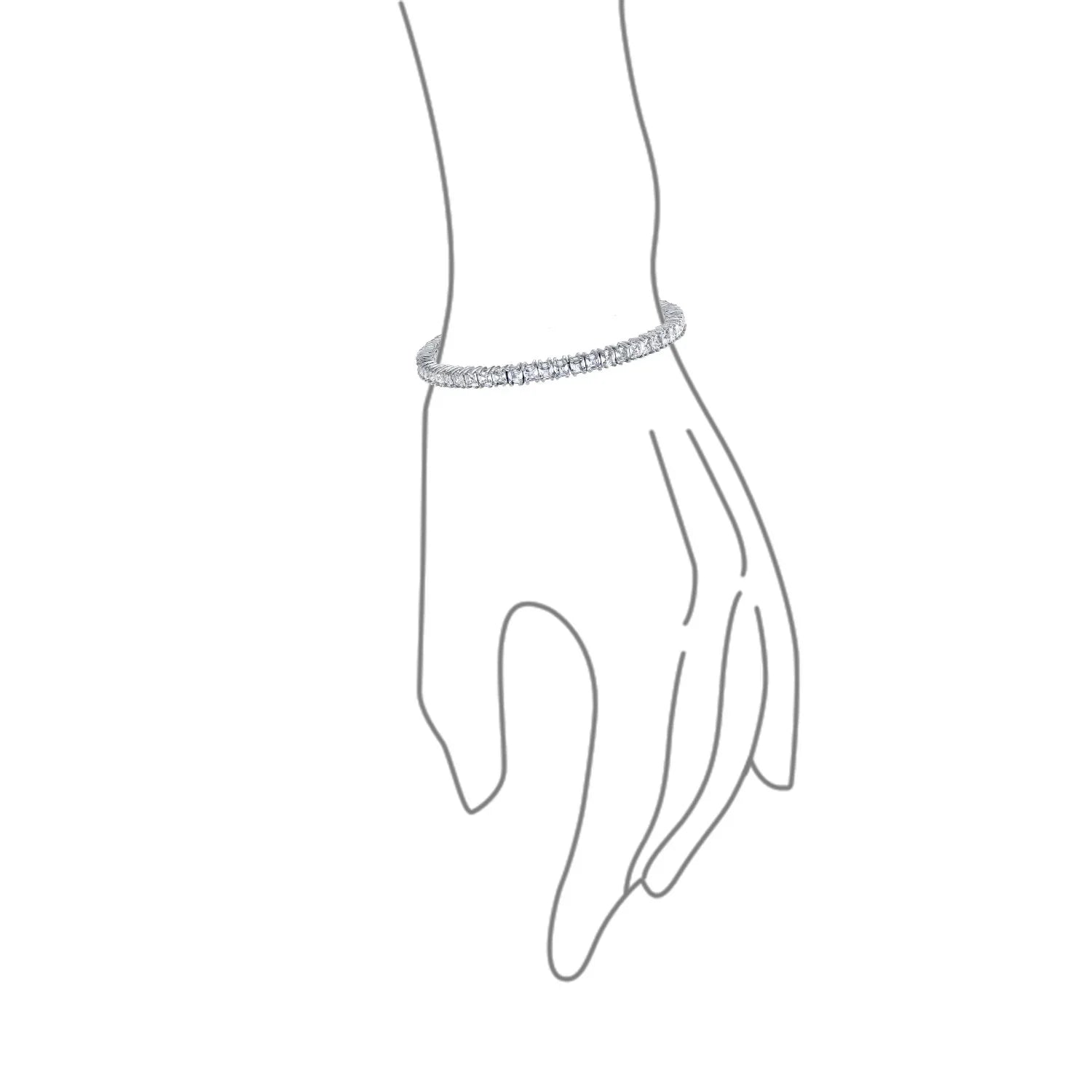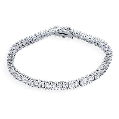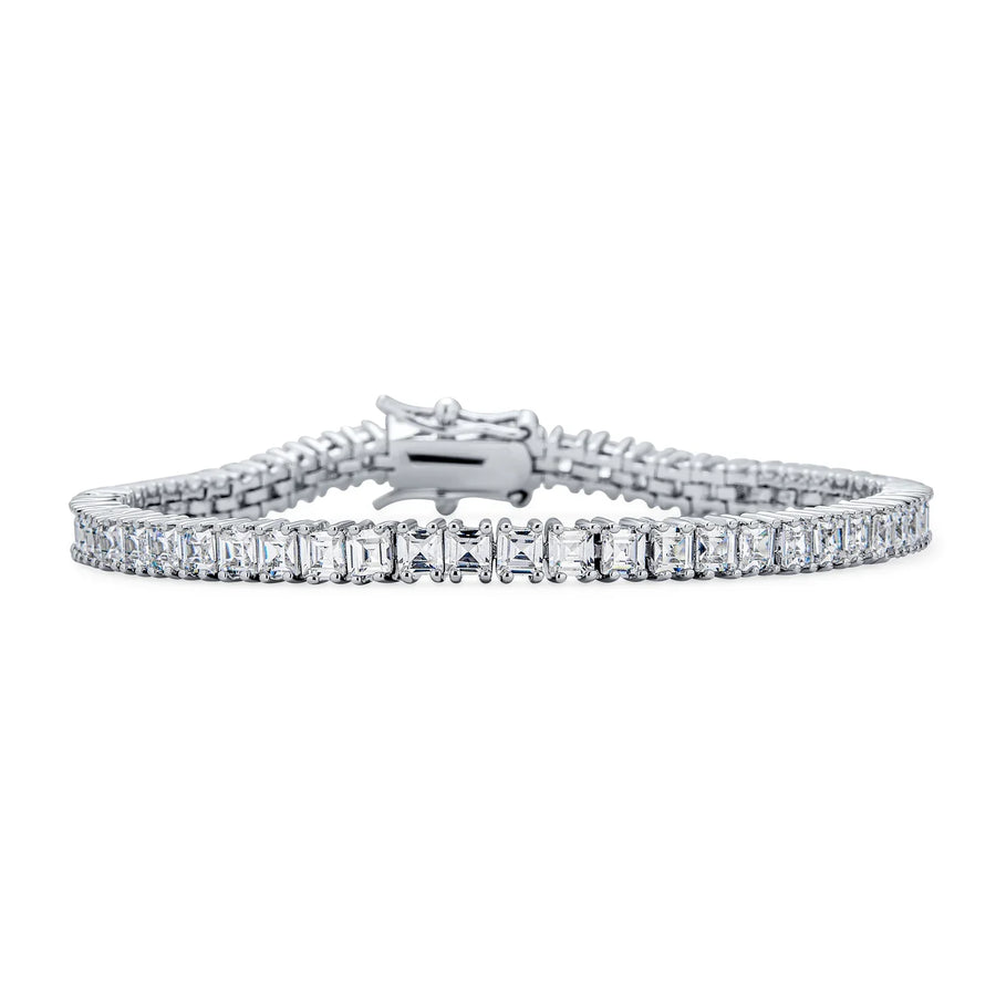 - Elevate any outfit with this stunning tennis bracelet, perfect for adding a touch of glamour to your look. Ideal for brides or anyone looking to make a statement, this bracelet features sparkling Asscher cut CZs in a timeless line style design. Stand out and shine with this exquisite accessory.