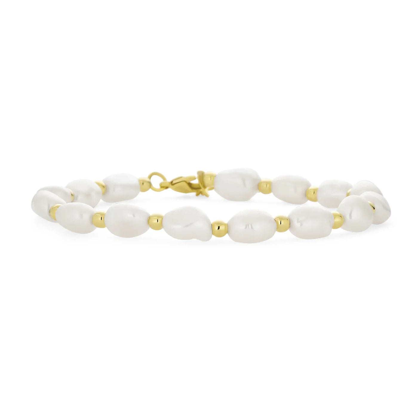 - Measure: 6.5 Inch Length Plus 2 Inch Extender, 5 x 10 MM Pearl, Weight: 6.4 Gram, Material: Anti-Tarnish Rhodium Yellow Gold Plated Brass, White Freshwater Cultured Baroque Pearl, HYPOALLERGENIC - Lead free Nickle-free.