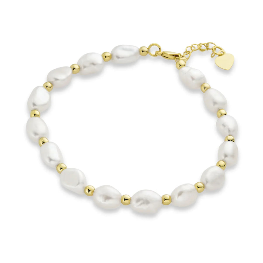 - A beautifully feminine design that enhances your style, featuring a strand of 14 radiant white freshwater cultured pearls, elegantly accented with gold bead spacers. Perfect for adding a touch of grace to your bridal party or as a charming gift for Mother's Day.